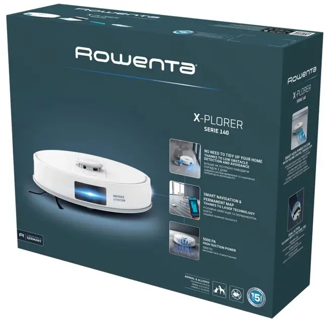 Rowenta X-PLORER серії 140 — робот-пилосос, настільки точний, що вам більше не потрібно попередньо прибирати свій дім! Розумна лазерна навігація та виявлення низьких перешкод забезпечують бездоганне прибирання без зусиль. Познайомтеся з повним пакетом можливостей: інтелектуальна навігація, висока потужність всмоктування до 5000 Па, подвійне очищення з системою вологого прибирання Smart Aqua Power та багато іншого.