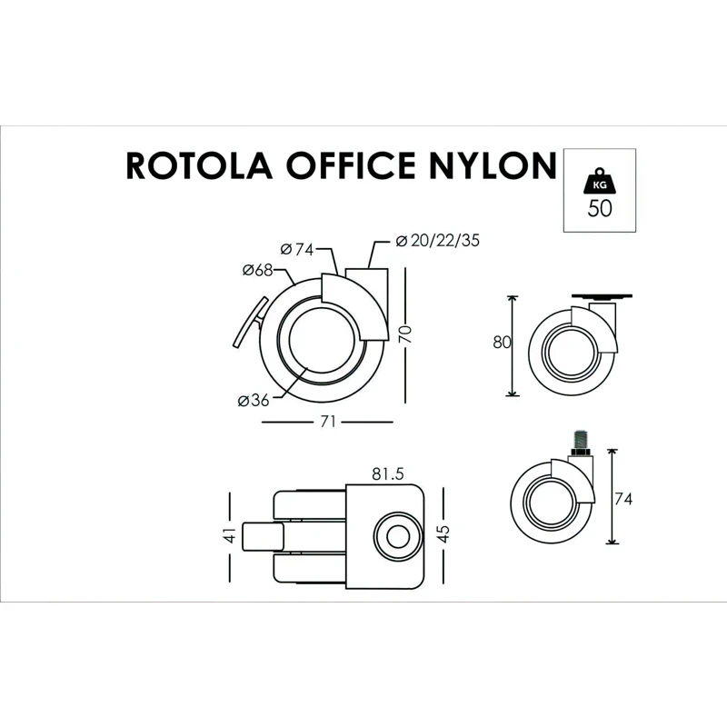 Мебельный ролик OgTM ROTOLA OFFICE 5.1 D-68мм Алюминий/Серый – это качественный ролик для офисной мебели, обеспечивающий плавное движение и высокую износостойкость. Алюминиевый корпус делает конструкцию прочной, а нейлоновое колесо гарантирует бесшумное передвижение.