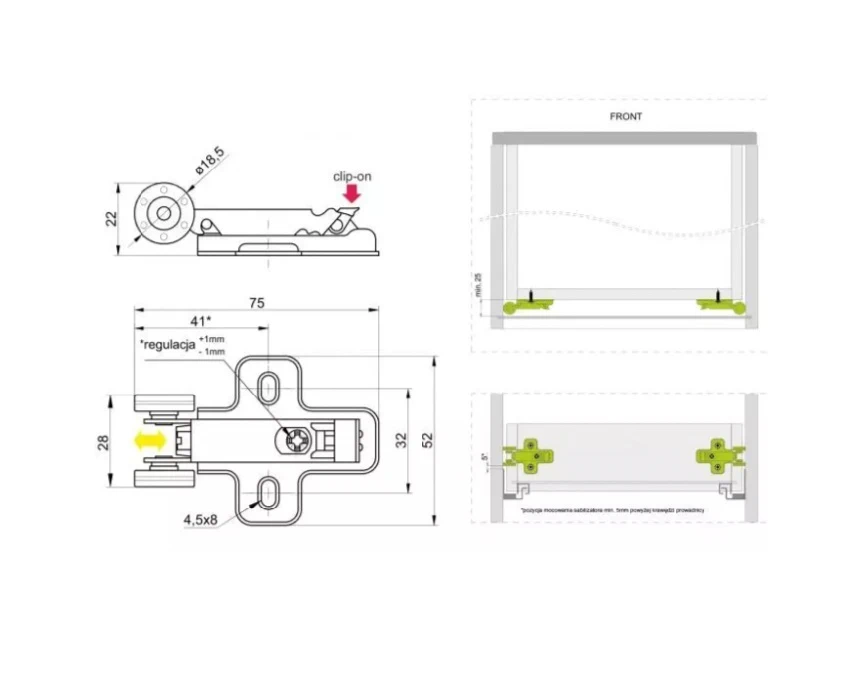 Ролик-стабилизатор GTV для ящиков PUSH TO OPEN PB-D-P2OSTAB, никель (2 шт.) — это вспомогательный элемент, предназначенный для повышения устойчивости и плавности хода выдвижных ящиков с системой открытия нажатием. Идеален для мебели без ручек, обеспечивая синхронное открытие при нажатии с любой стороны фасада.