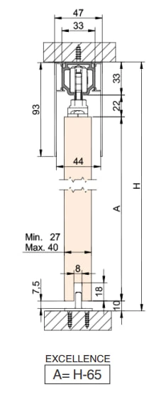 Розсувна система SAHECO SF-RA P70 STAR з подвійним дотягувачем для дерев'яних дверей