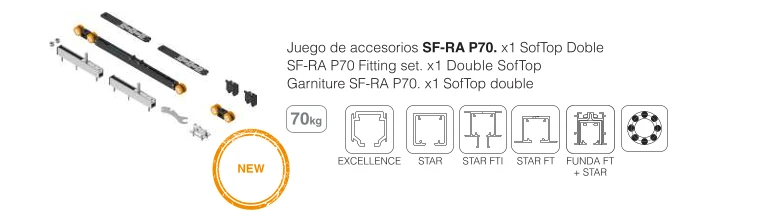 Розсувна система SAHECO SF-RA P70 STAR з подвійним дотягувачем для дерев'яних дверей