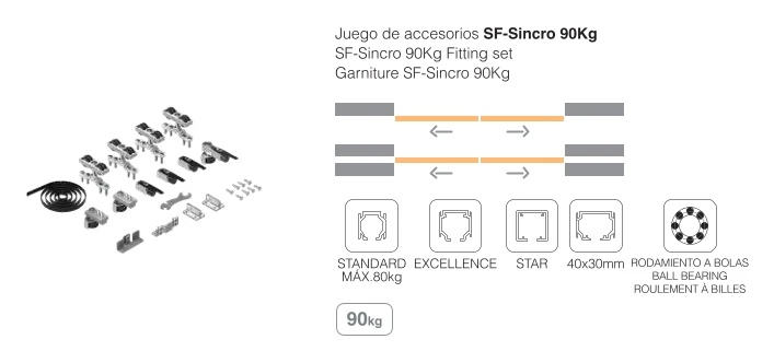 Розсувна система SAHECO SF-Sincro 90 kg STAR для дерев'яних дверей з синхронним відкриванням 4 метри