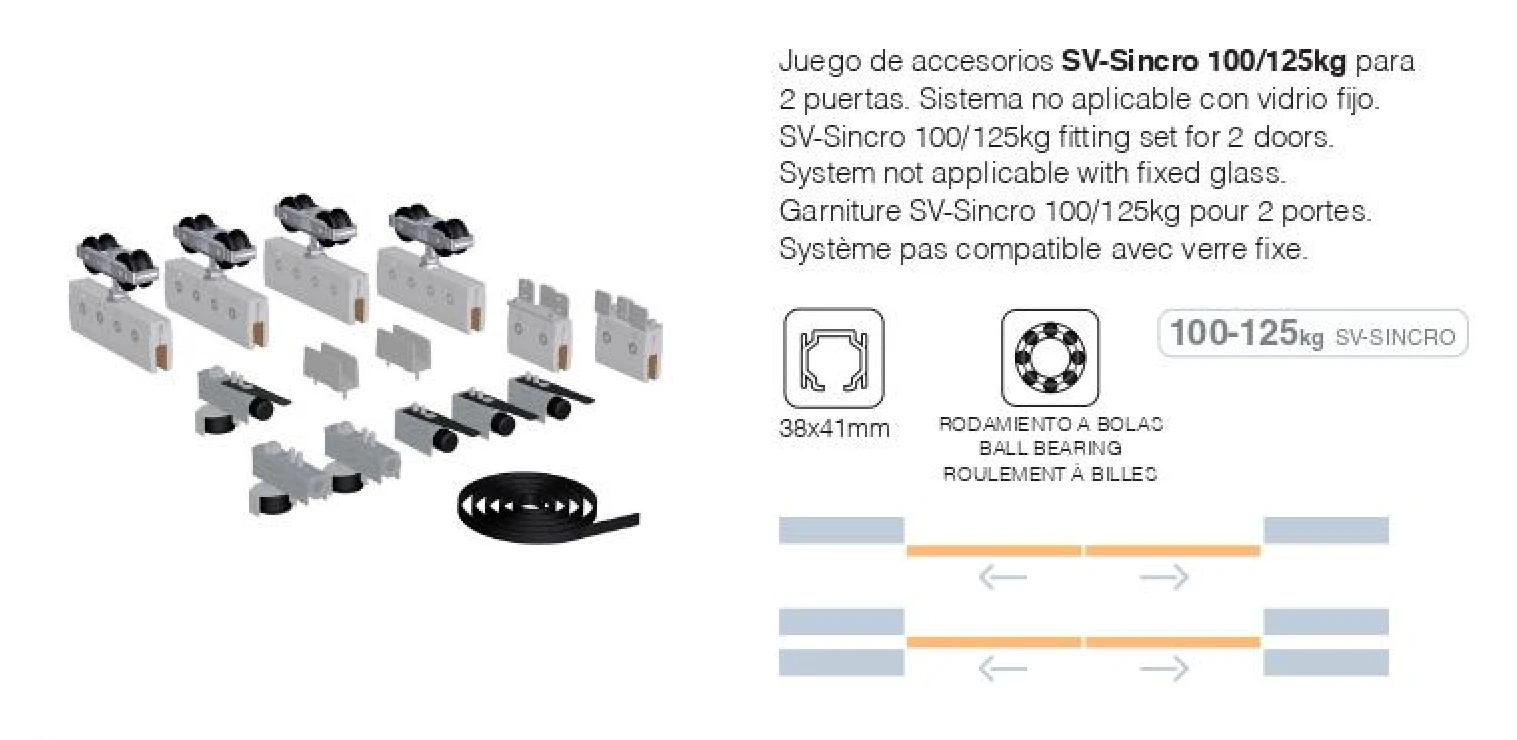 Комплект фурнітури для синхронних скляних дверей SV-Sincro Heavy Duty