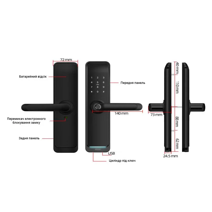 - Тип открытия дверцы Відбиток пальця (до 200), PIN‑код (до 150), карта/