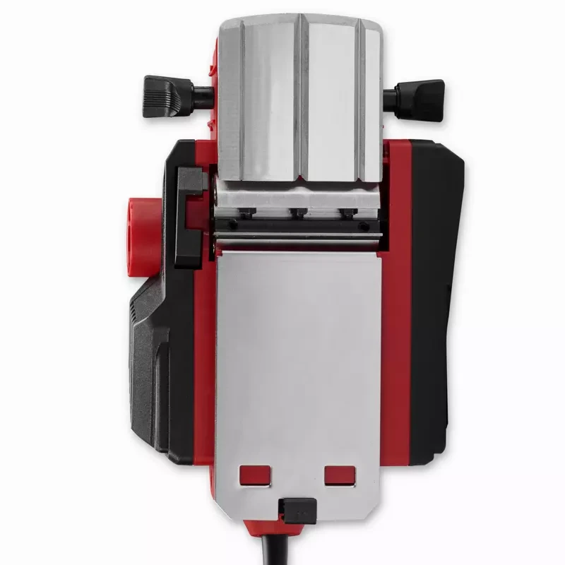 Einhell TC-PL 800 — електричний рубанок потужністю 800 Вт із шириною стругання 82 мм та глибиною різання до 2 мм. Швидкість обертання 17 000 об/хв забезпечує чисту обробку поверхні, а три V-подібні пази в алюмінієвій опорній плиті дають змогу точно знімати фаски. Обмежувач глибини фальца до 10 мм та автоматичний паркувальний башмак розширюють функціональність інструмента. Маса — 2,52 кг, кабель — 2 м із захистом від перегину.