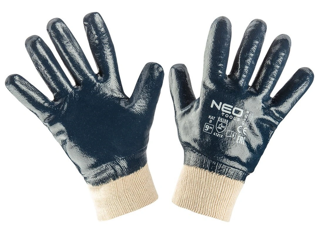 Рукавички робочі Neo Tools, нітрилове покриття, бавовна, р.9, синій