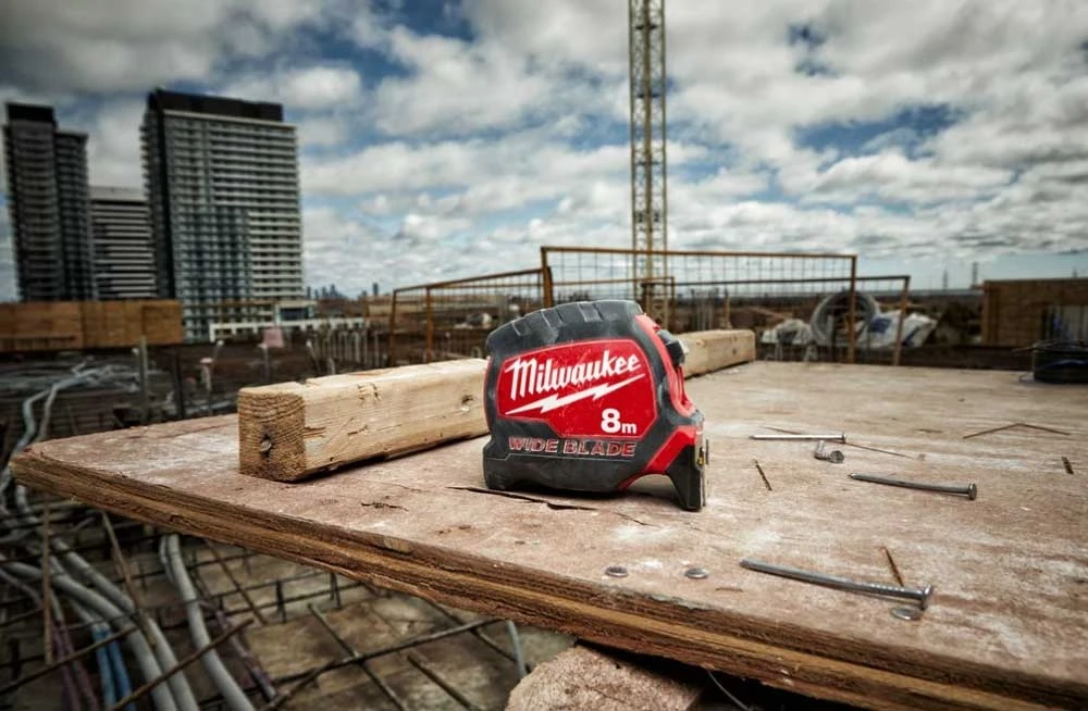 Рулетка Milwaukee Wide Blade забезпечує високу точність вимірювань та має посиленну ленту з жорсткістю для роботи однією рукою. Міцний корпус із АБС-пластику витримує інтенсивні навантаження. Зручний фіксатор змотування дозволяє надійно фіксувати ленту під час роботи.