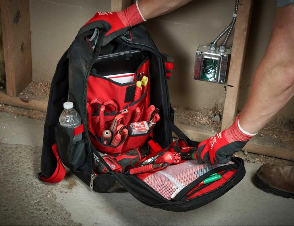 Рюкзак для інструменту Milwaukee призначений для транспортування ручного інструменту та витратних матеріалів у компактному форматі. Конструкція передбачає 22 кишені для впорядкованого розміщення інструментів, вимірювальних приладів і дрібних аксесуарів. Тканина 1680D ballistic характеризується підвищеною стійкістю до зношування. Посилене дно забезпечує стабільність рюкзака під час встановлення на тверді поверхні.
