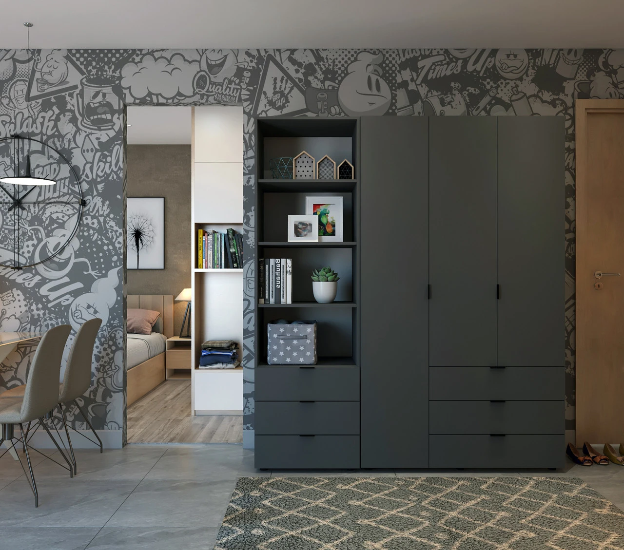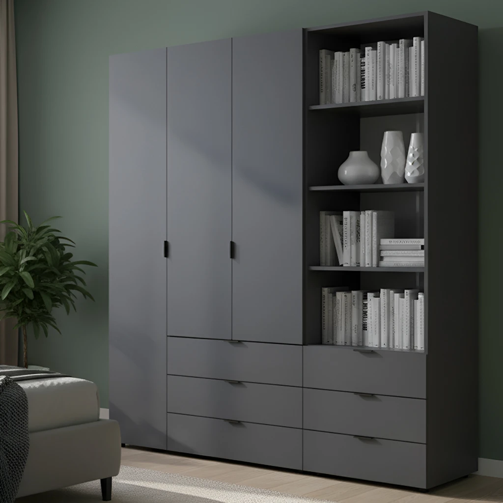 Шафа для одягу Doros Гелар ГрафітПлануєте оновити свій інтер'єр і шукаєте стильне та функціональне рішення для зберігання одягу? Шафа для одягу Doros Гелар Графіт – це ідеальний вибір для тих, хто цінує якість та естетику. Її сучасний дизайн в графітовому кольорі легко впишеться в будь-який інтер'єр, додаючи нотку елегантності та стильності вашій кімнаті.Виготовлена з надійних матеріалів, шафа має розміри 176.2х49.5х203.4 см, що забезпечує достатньо місця для зберігання вашого одягу та аксесуарів. Додатковий пенал дозволяє організувати простір ще більш ефективно, надаючи можливість зберігати речі в порядку. Завдяки продуманій конструкції, ви зможете легко знайти все, що вам потрібно, не витрачаючи час на пошуки.Не упустіть можливість стати власником цієї практичної та стильної шафи! Замовте шафу для одягу Doros Гелар Графіт вже сьогодні і насолоджуйтеся зручністю та красою у вашій оселі. Довгий термін служби та бездоганний вигляд – це те, що зробить вашу покупку справжньою інвестицією у комфорт та стиль вашого дому.
