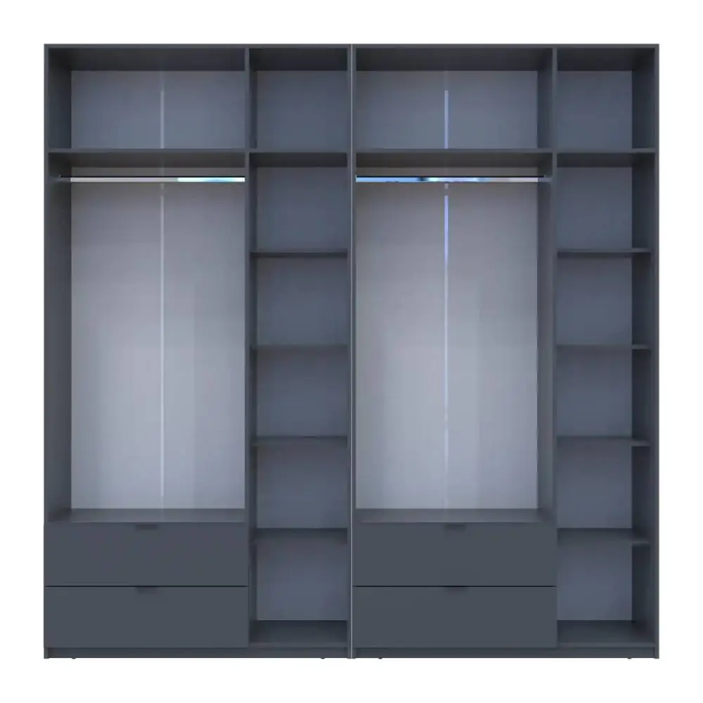 Не пропустіть можливість облаштувати свій простір стильно та практично! Завдяки розумному плануванню внутрішнього простору, ви зможете легко організувати свої речі, а вбудовані полиці та штанги для одягу дозволять зберігати все в ідеальному порядку. Оберіть шафу Doros Лукас Графіт і насолоджуйтесь комфортом у кожному дні!