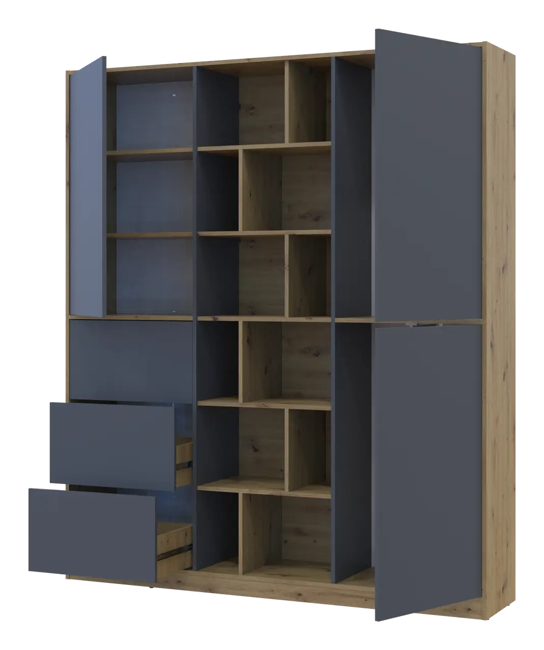 Шафа для одягу Doros Морган — це ідеальне рішення для тих, хто цінує поєднання елегантного дизайну та практичності. Виготовлена з якісного ДСП, вона має стильне поєднання кольорів: дуб Артизан і графіт, що дозволяє їй гармонійно вписатися в будь-який інтер'єр. Розміри 180х38.5х210 см забезпечують достатньо простору для зберігання вашого одягу, взуття та аксесуарів, а також вражаючу місткість завдяки шухлядам, які оптимізують використання простору.