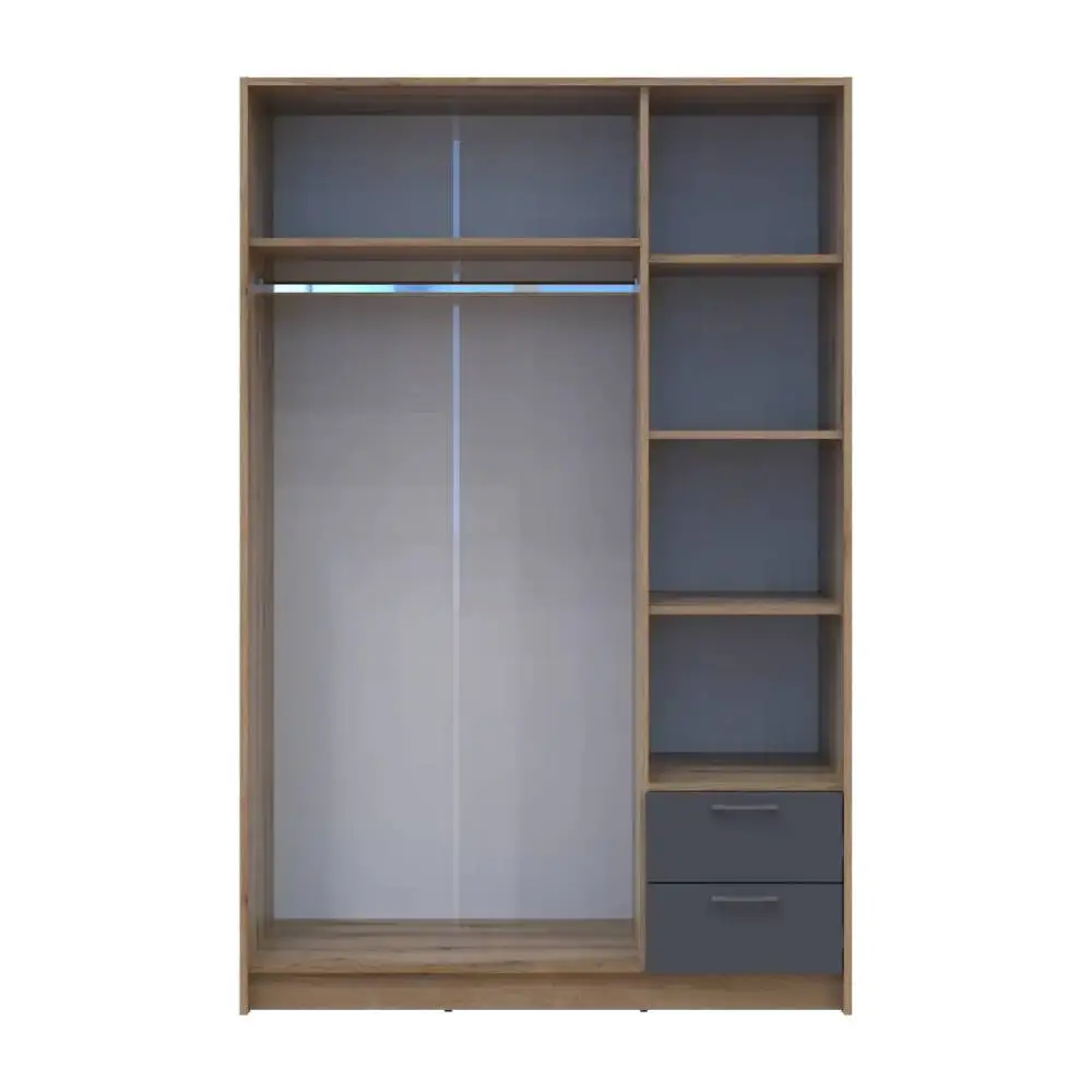 Шафа для одягу Doros Ронді в кольоровій гамі Дуб Артизан та Графіт — це ідеальне рішення для тих, хто цінує стиль і практичність. Завдяки своїм розмірам 121х52х195 см, вона легко впишеться в будь-який простір, надаючи йому сучасного вигляду. Виготовлена з якісного 3ДСП, ця шафа не лише стійка до зносу, але й легка в догляді, що робить її відмінним вибором для щоденного використання.