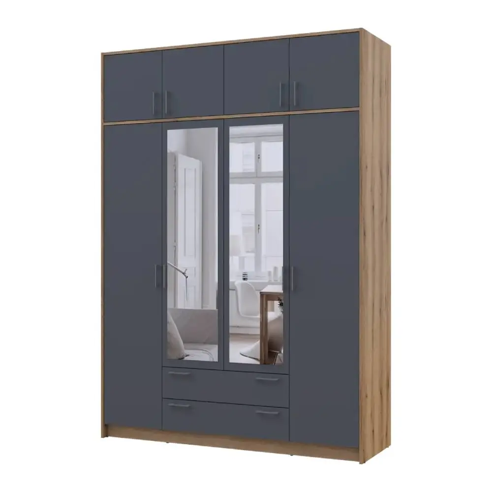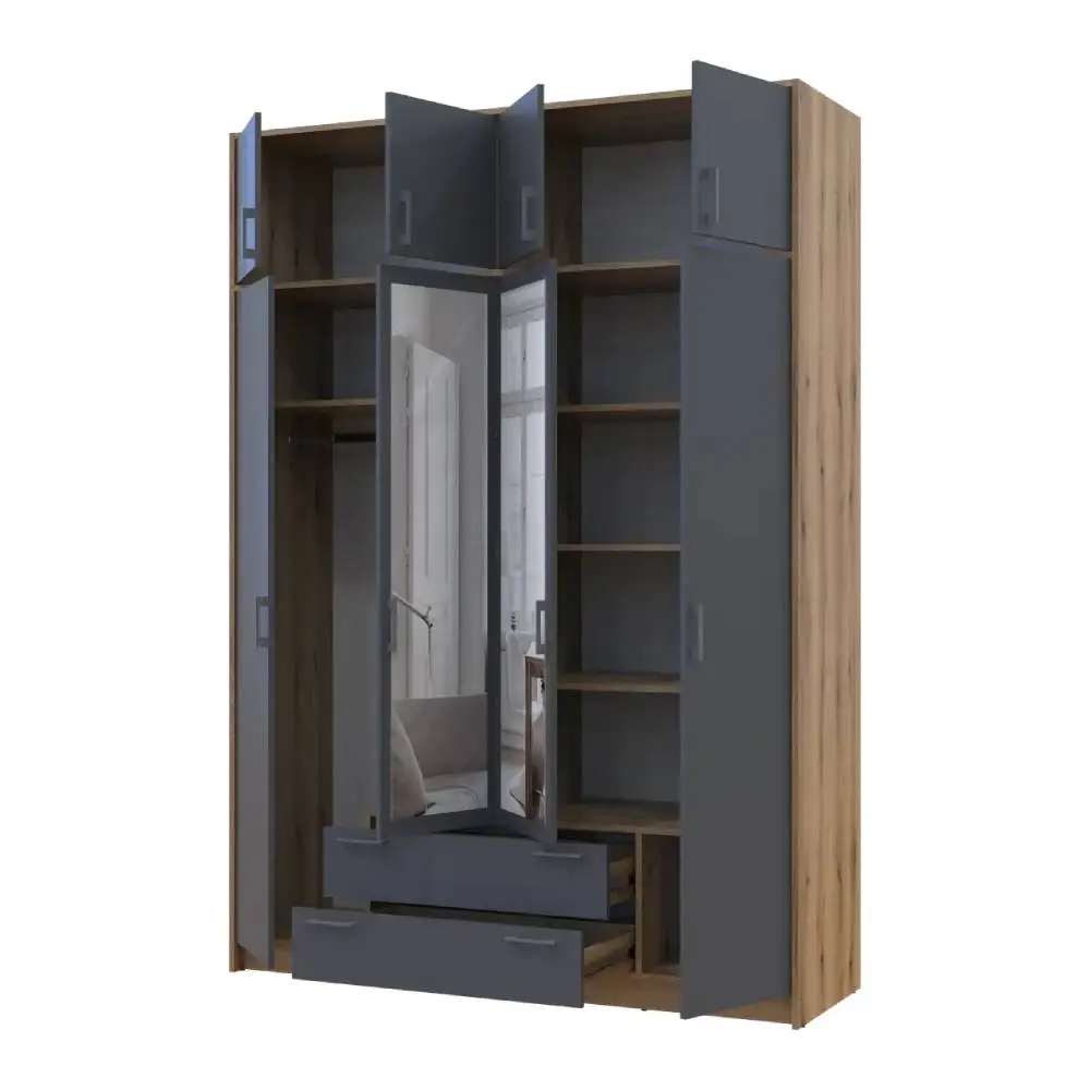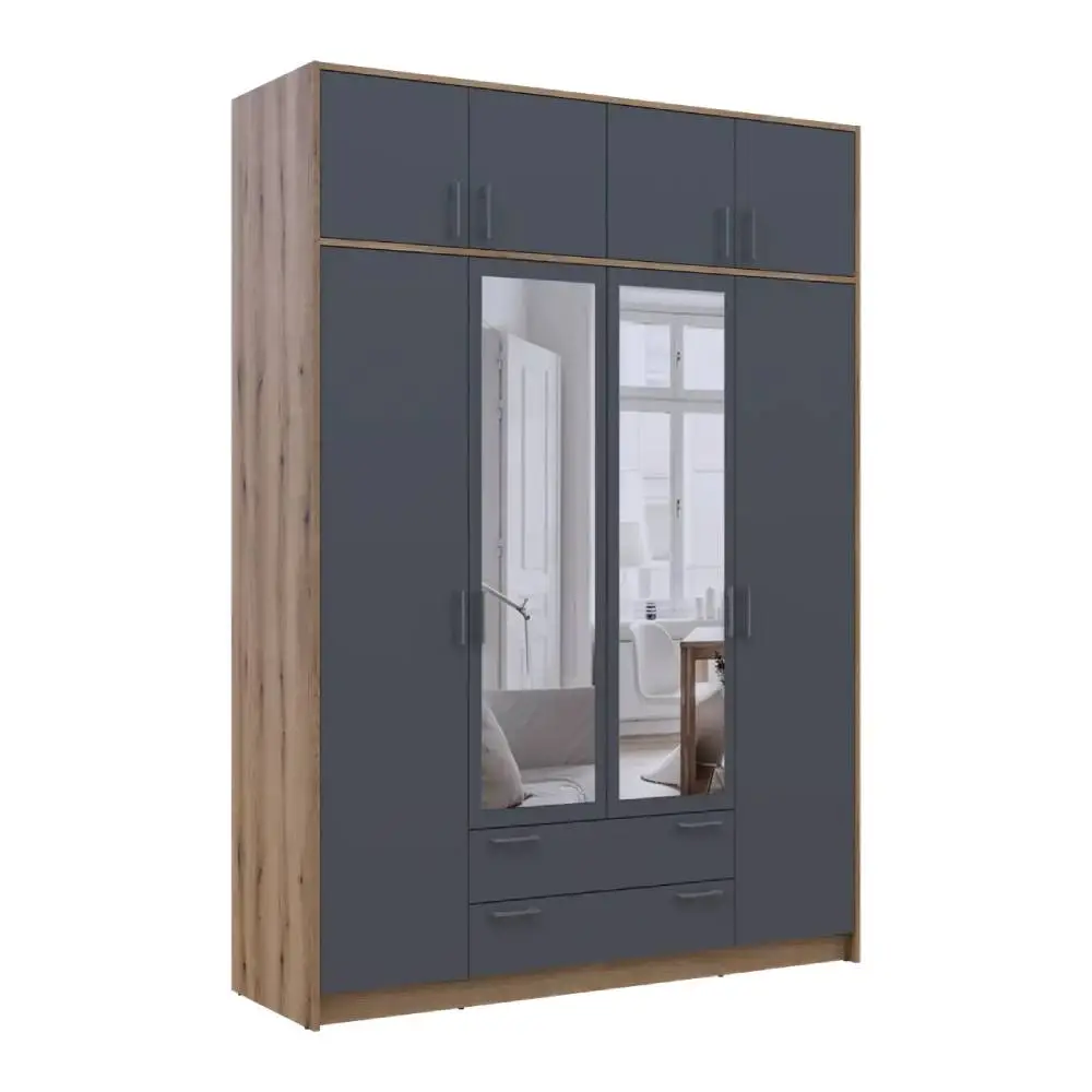 Шафа для одягу Doros Ронді з антресоллю і дзеркалом Дуб Артизан/Графіт 4ДСП 160х52х236 DRS-011677 (8