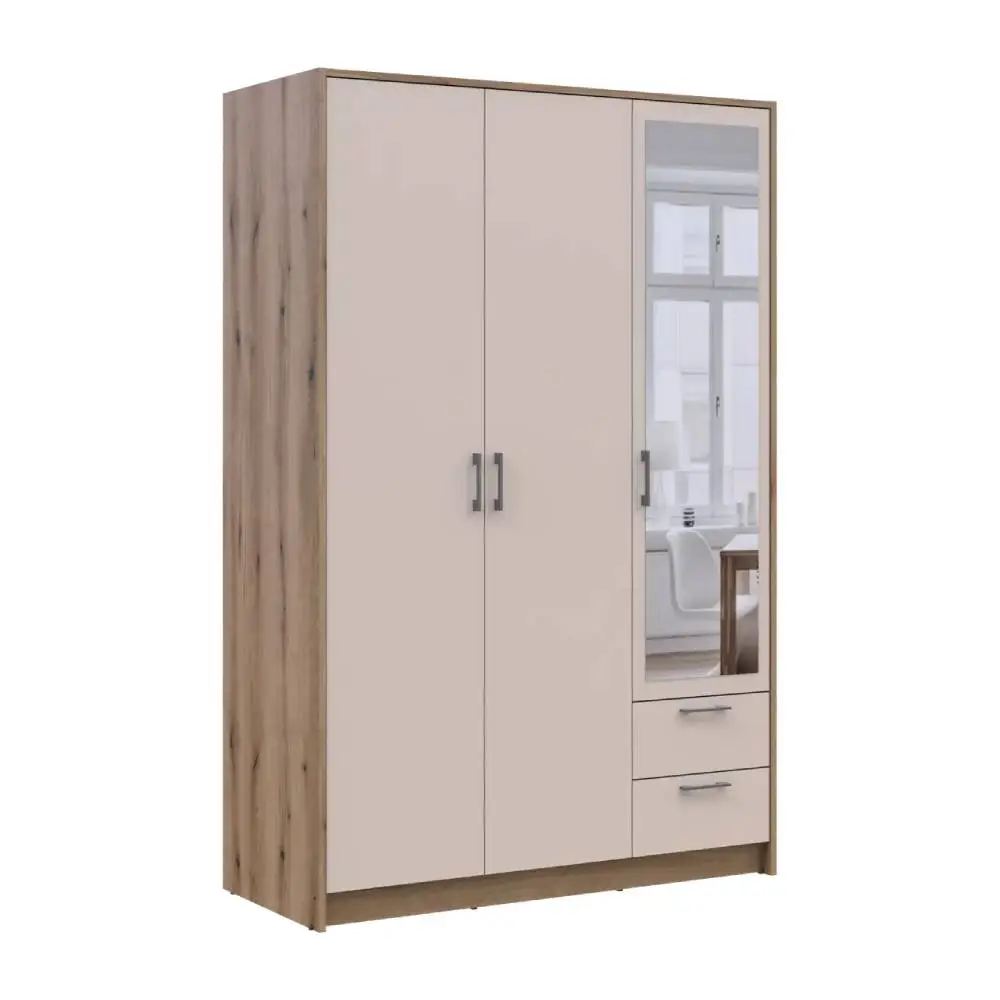 Шафа для одягу Doros Ронді з дзеркалом Дуб Артизан/Кашемір 3ДСП 121х52х195 DRS-011673 (80737817)