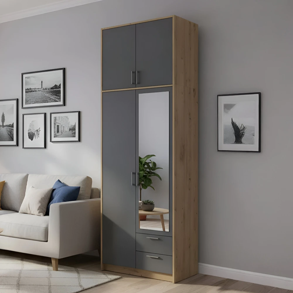 Шафа для одягу Doros Ронді з високою антресоллю і дзеркалом Дуб Артизан/Графіт 2 ДСП 82х52х260 (DRS-