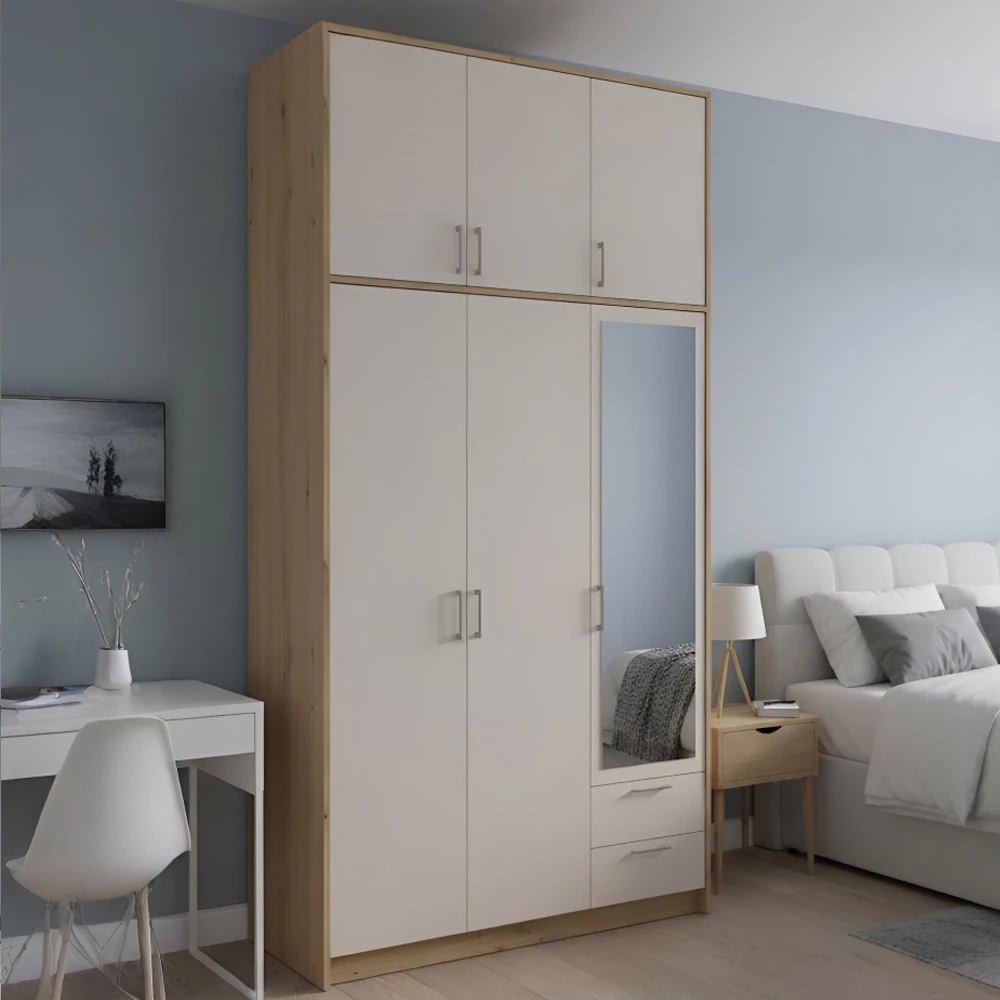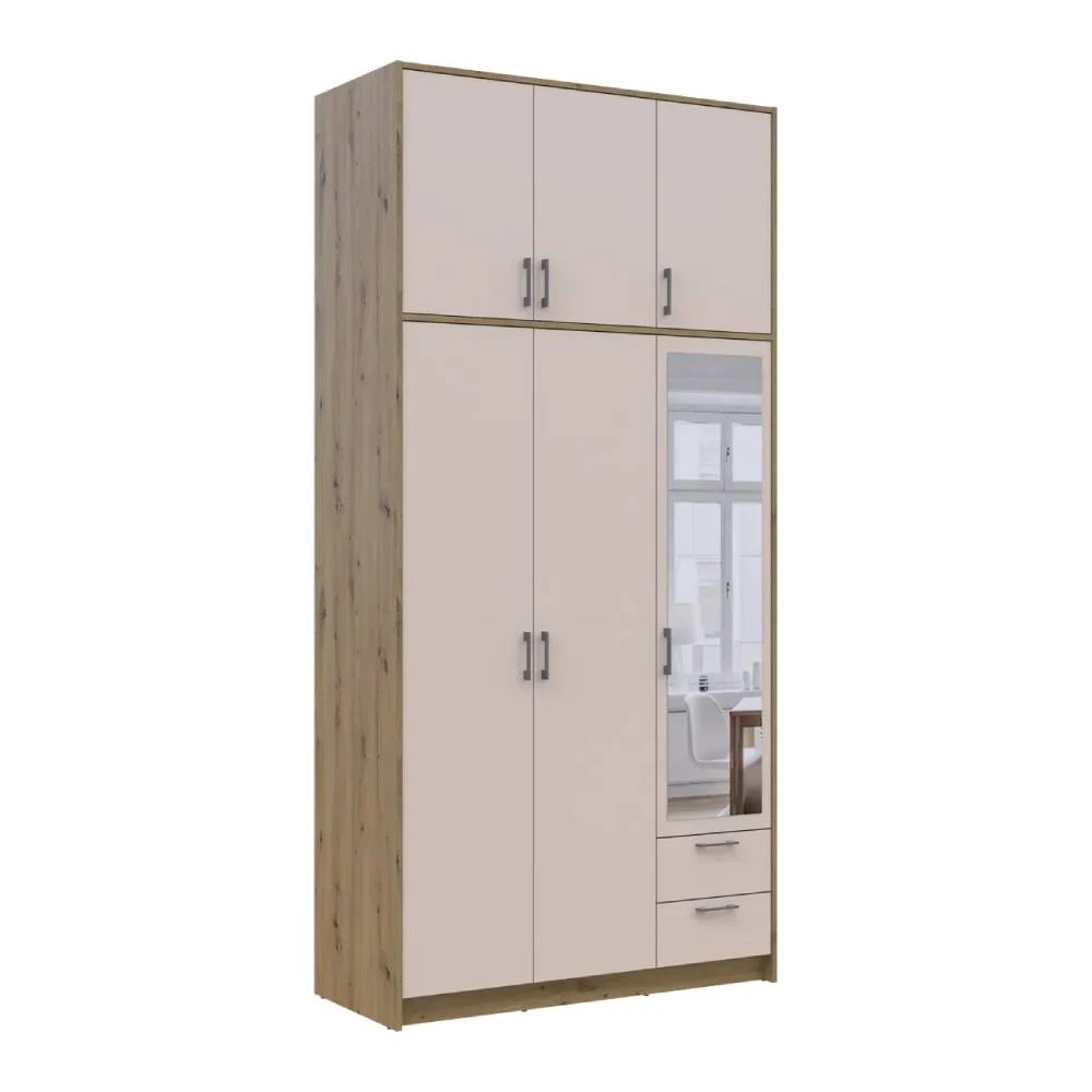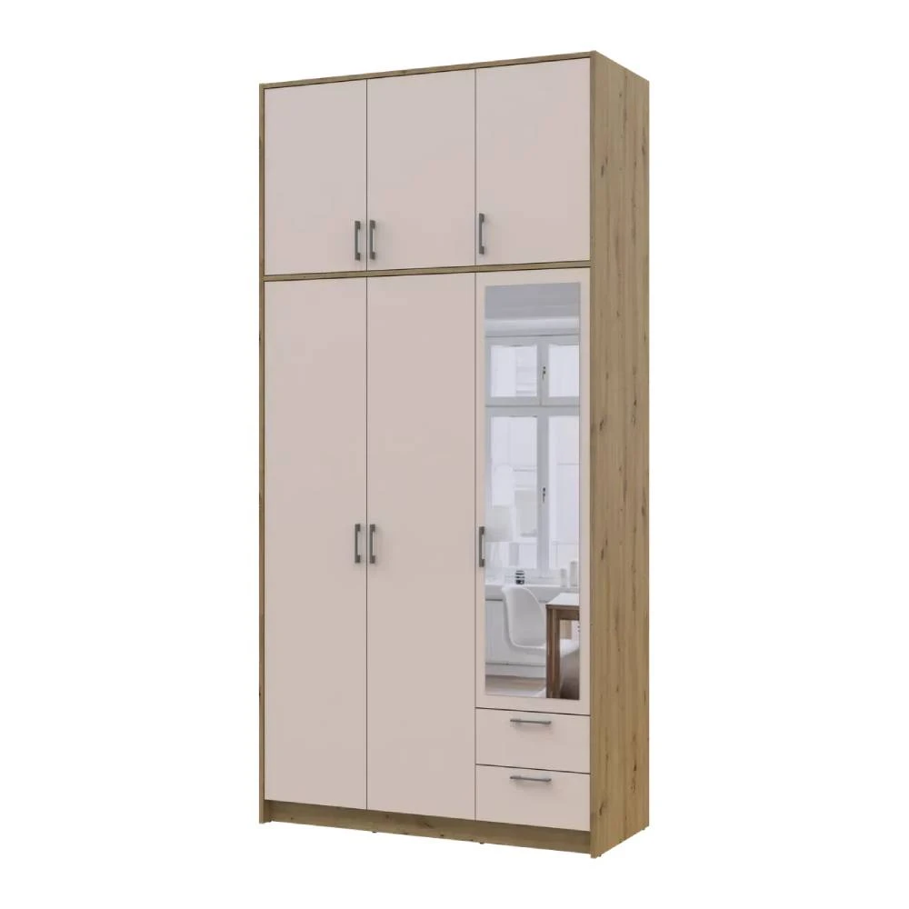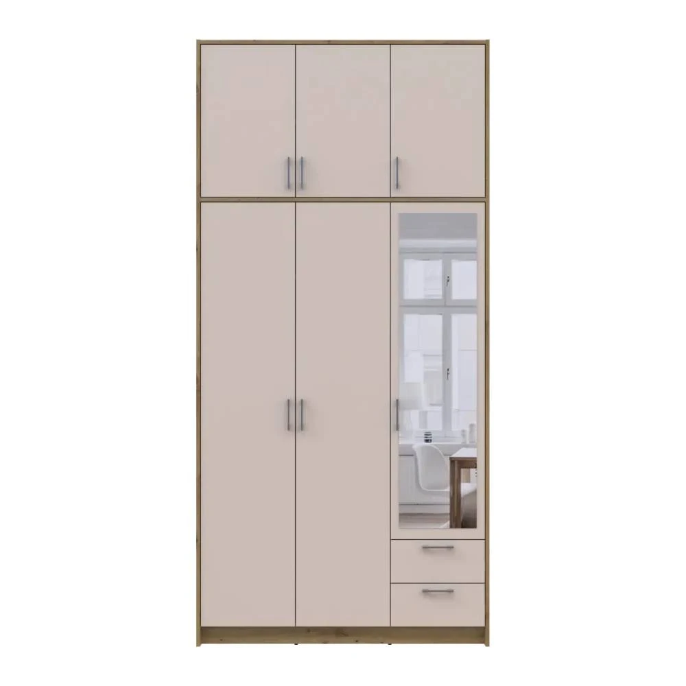 Шафа для одягу Doros Ронді з високою антресоллю і дзеркалом Дуб Артизан/Кашемір 3 ДСП 121х52х260 (DR
