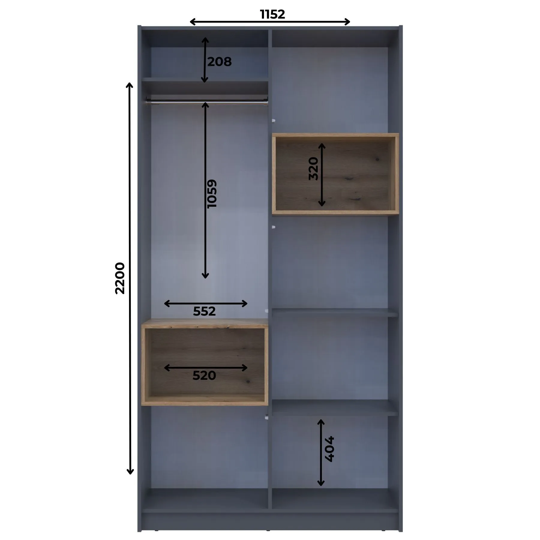 Шафа для одягу з нішою Doros Дейл 115,2х52х220 см Графіт/Дуб евок (DRS-011281)