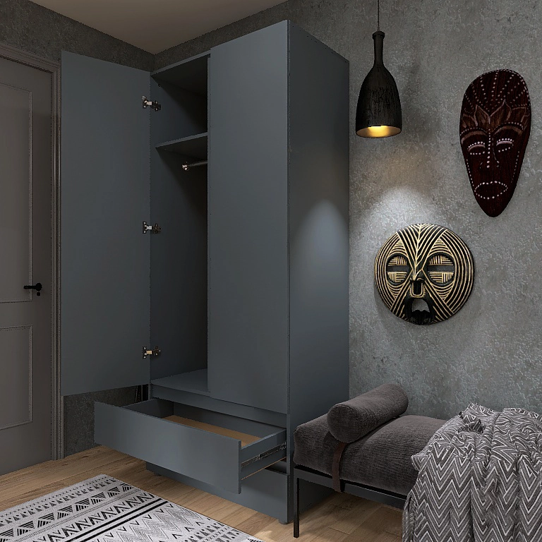 Шафа дводверна Еверест ШЛ-2 Лайт Графіт - це ідеальне рішення для тих, хто цінує стиль і функціональність. Її сучасний дизайн в кольорі графіт додає елегантності будь-якому інтер'єру, а місткі відділення дозволяють зручно організувати ваш простір. Завдяки своїй універсальності, ця шафа легко впишеться в спальню, вітальню або передпокій, створюючи затишну атмосферу у вашому домі.