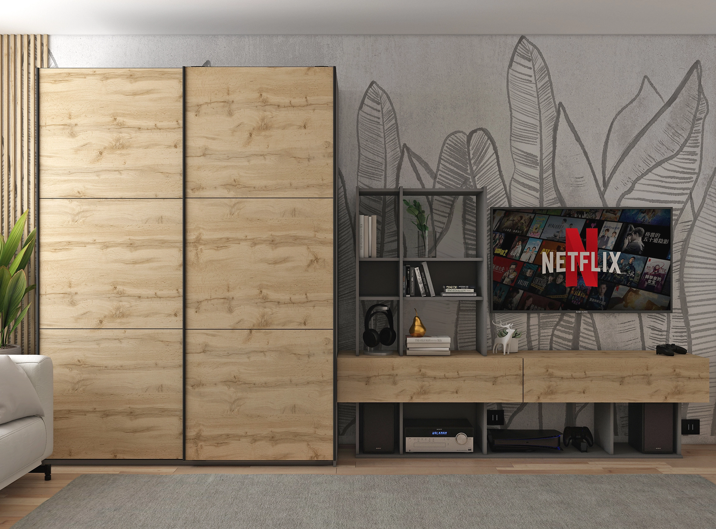 Шафа-купе двохдверна Doros G-Caiser поєднує в собі сучасний дизайн та функціональність, що робить її відмінним вибором для будь-якого приміщення. Виготовлена з якісних матеріалів, вона забезпечує надійність і довговічність. Завдяки стильному поєднанню графітового кольору та дуба евок, шафа додає елегантності та затишку, підходячи до різних інтер'єрних стилів.
