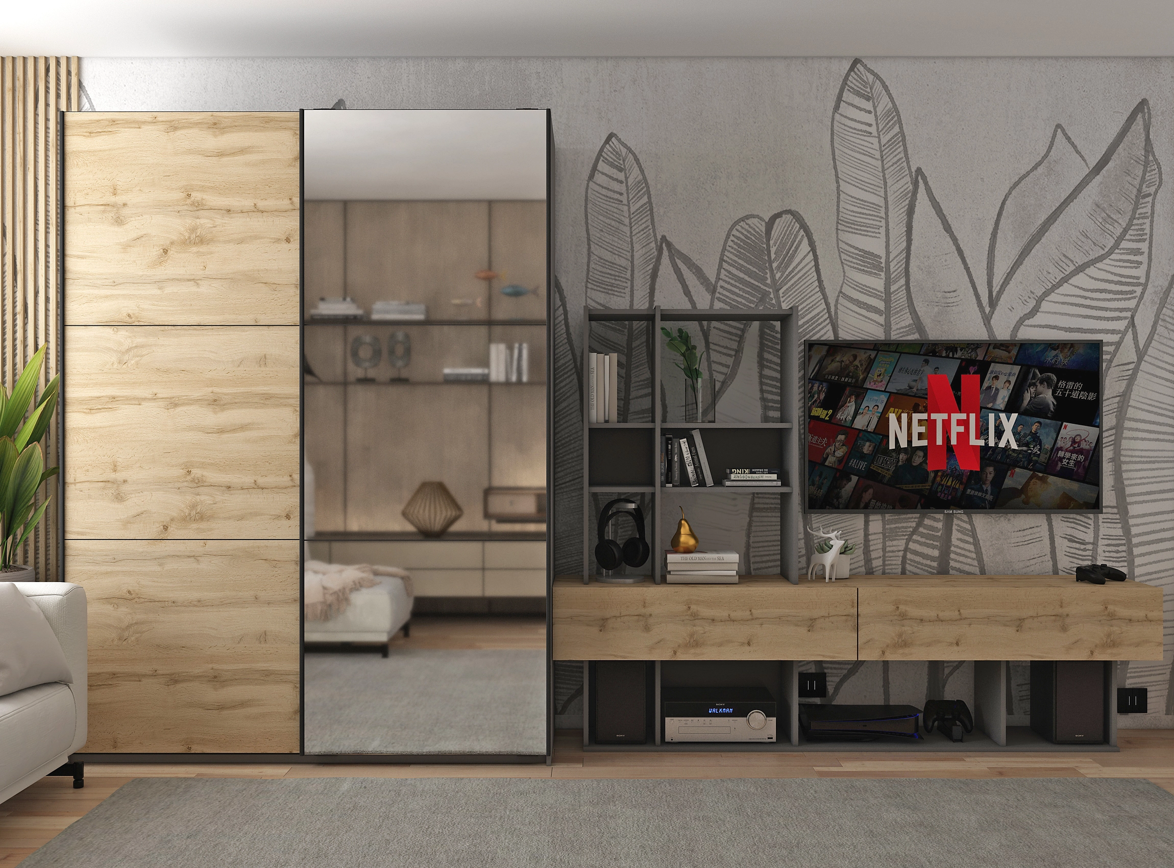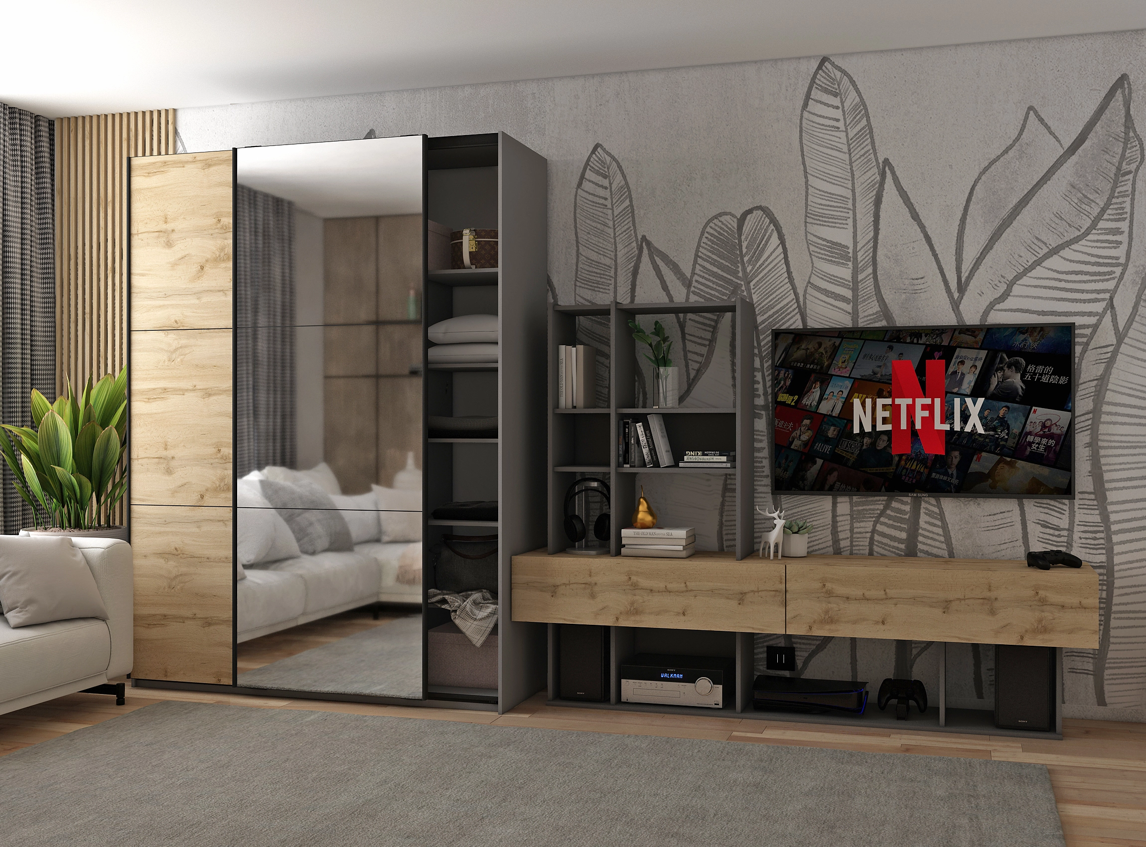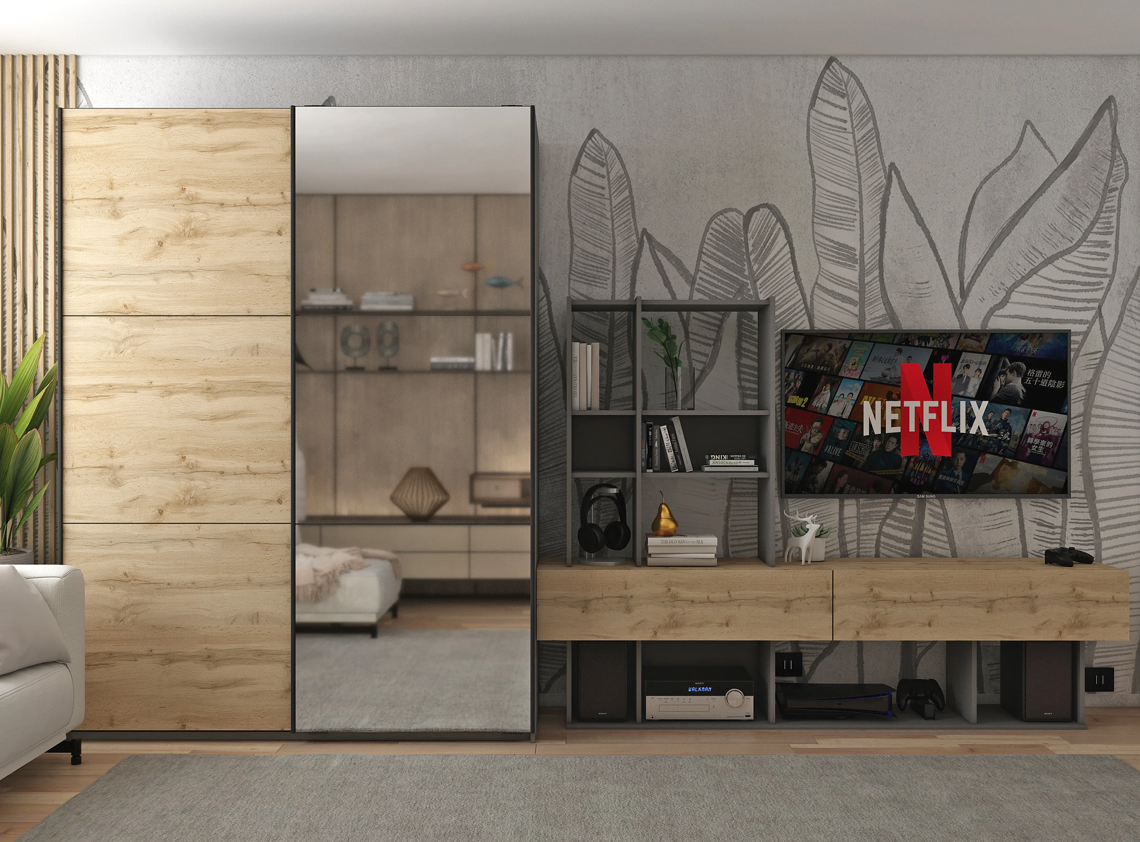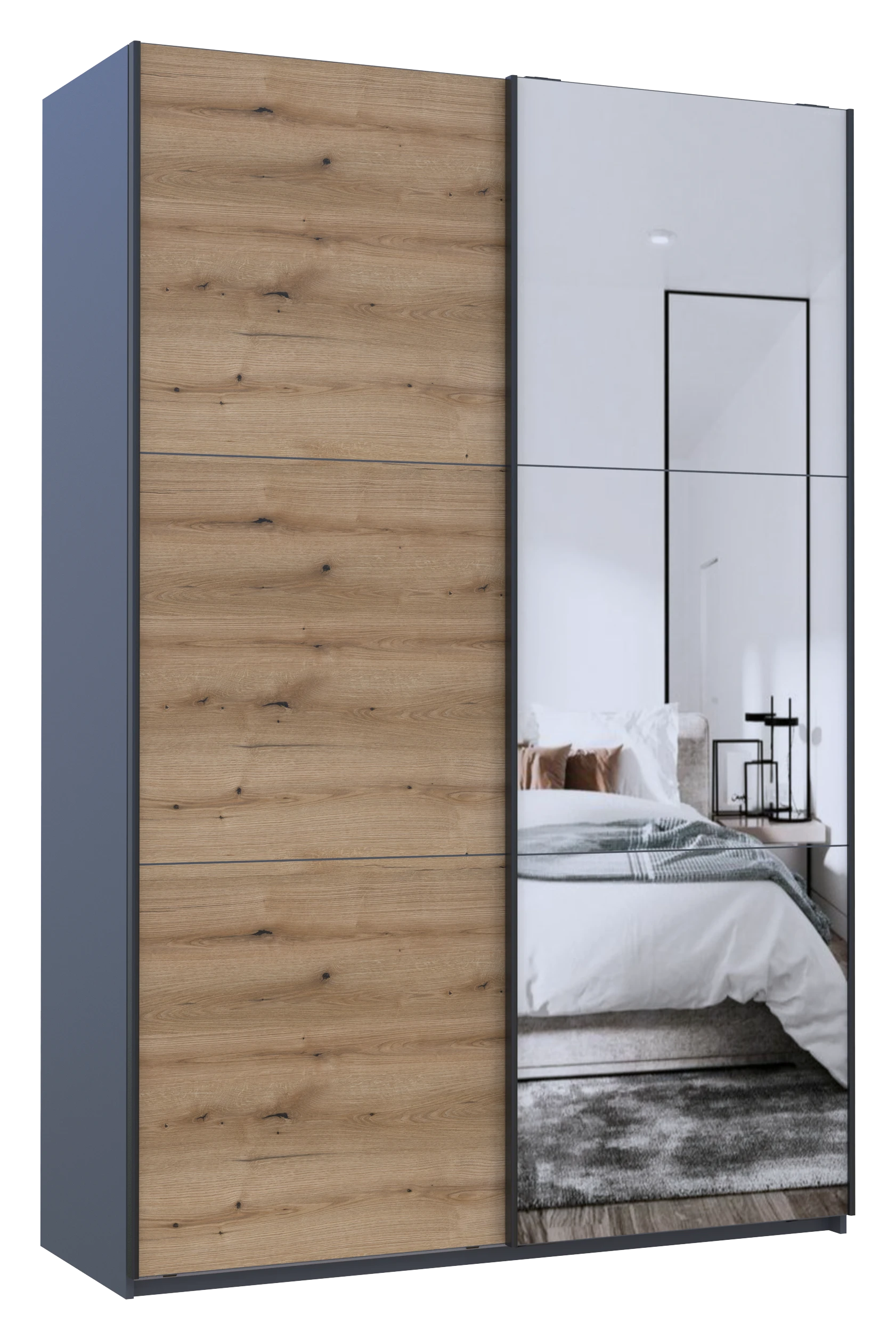 Шукаєте ідеальне рішення для зберігання речей? Шафа-купе двохдверна Doros G-Caiser стане чудовим доповненням до вашого інтер'єру. Виготовлена з якісних матеріалів, вона поєднує в собі елегантний графітовий колір і натуральний дуб, що додає атмосферності та затишку. Завдяки великому дзеркалу ви не лише зможете оцінити свій образ, але й візуально розширите простір у кімнаті.