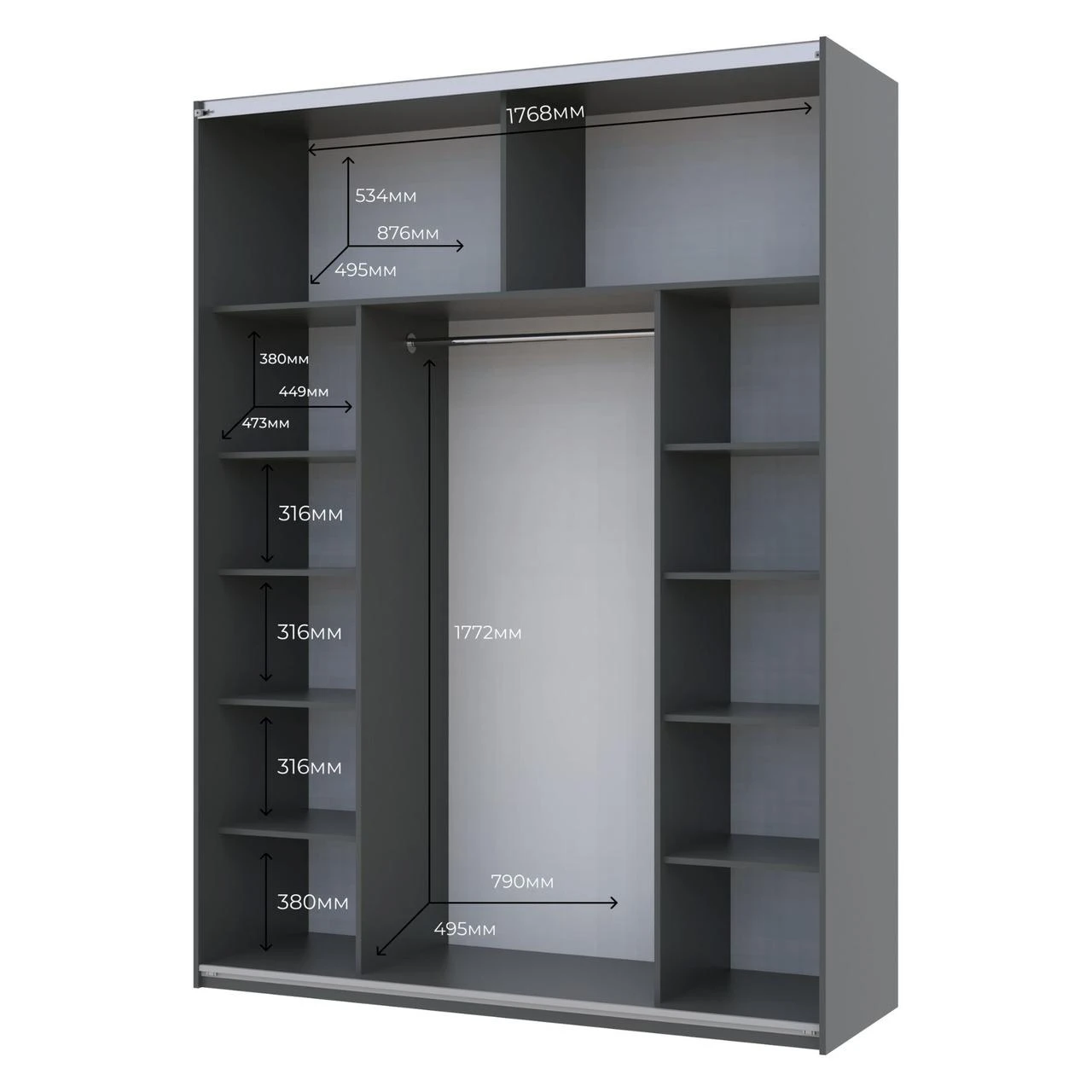 Шафа-купе двохдверна Doros G-Caiser 180х60х240 см Графіт/Дуб евок/1 Дзеркало (DRS-011227)