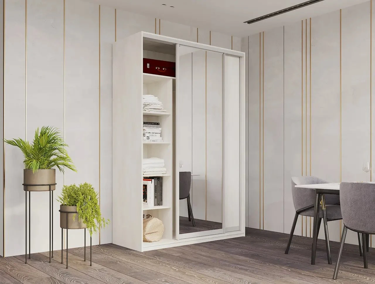Шафа-купе двохдверна Doros Сіті ЛайтВідкрийте для себе ідеальний баланс між стилем і функціональністю з шафою-купе Doros Сіті Лайт. Ця елегантна модель розміром 120х60х225 см виконана в сучасному дизайні з білим деревом і дзеркалом, що додає візуальної легкості та простору у вашій кімнаті. Її стильний вигляд гармонійно впишеться в будь-який інтер’єр, підкреслюючи вашу індивідуальність.Шафа обладнана двома дверима, що забезпечують зручний доступ до ваших речей, а дзеркало не лише виконує функцію практичності, а й візуально розширює простір. Завдяки продуманій конструкції, ви зможете легко організувати свій простір, зберігаючи порядок у вашому домі. Забудьте про безлад – з Doros Сіті Лайт все буде на своїх місцях!Не упустіть можливість придбати цю чудову шафу-купе, яка стане не лише функціональним елементом вашого інтер’єру, а й стильним акцентом. Замовте Doros Сіті Лайт сьогодні і насолоджуйтеся комфортом та елегантністю у вашому просторі. Ваша кімната заслуговує на найкраще!