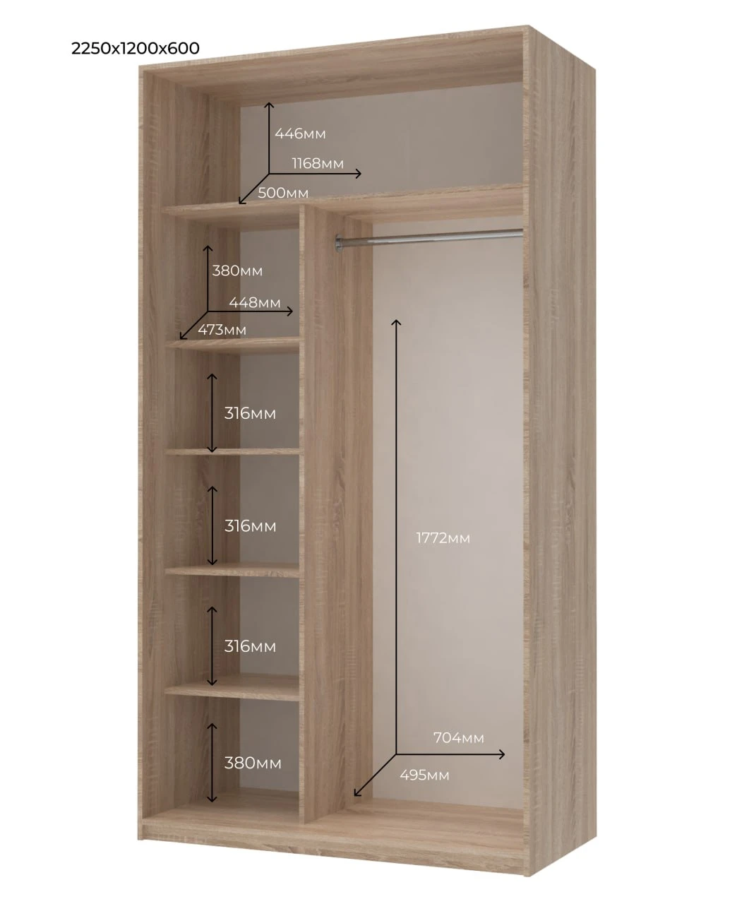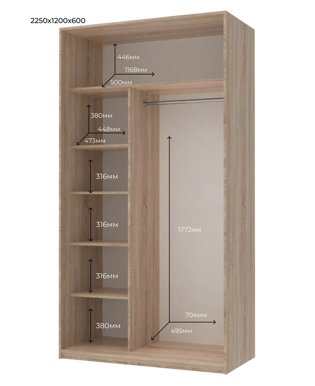 Шафа-купе двохдверна Doros Сіті Лайт 120х60х225 см Дуб сонома/1 Дзеркало (DRS-011081)