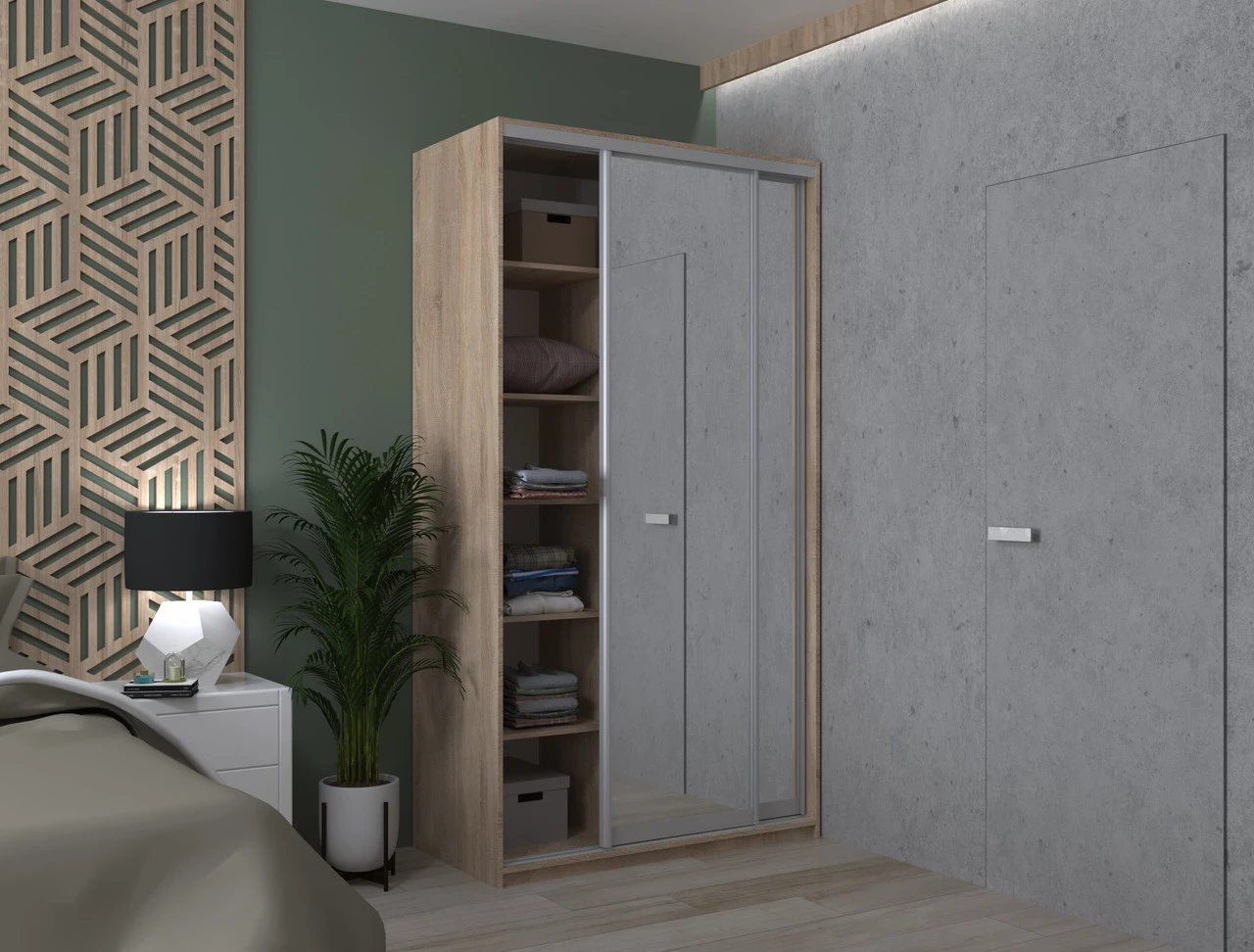 Відкрийте для себе ідеальне рішення для зберігання вашого одягу та аксесуарів з шафою-купе Doros Сіті Лайт. Її сучасний дизайн в кольорі дуб сонома з двома дзеркалами не лише прикрасить ваш інтер'єр, але і створить візуальну ілюзію простору. Завдяки своїм компактним розмірам, ця шафа ідеально підходить для будь-якої кімнати, зберігаючи при цьому стиль та елегантність.