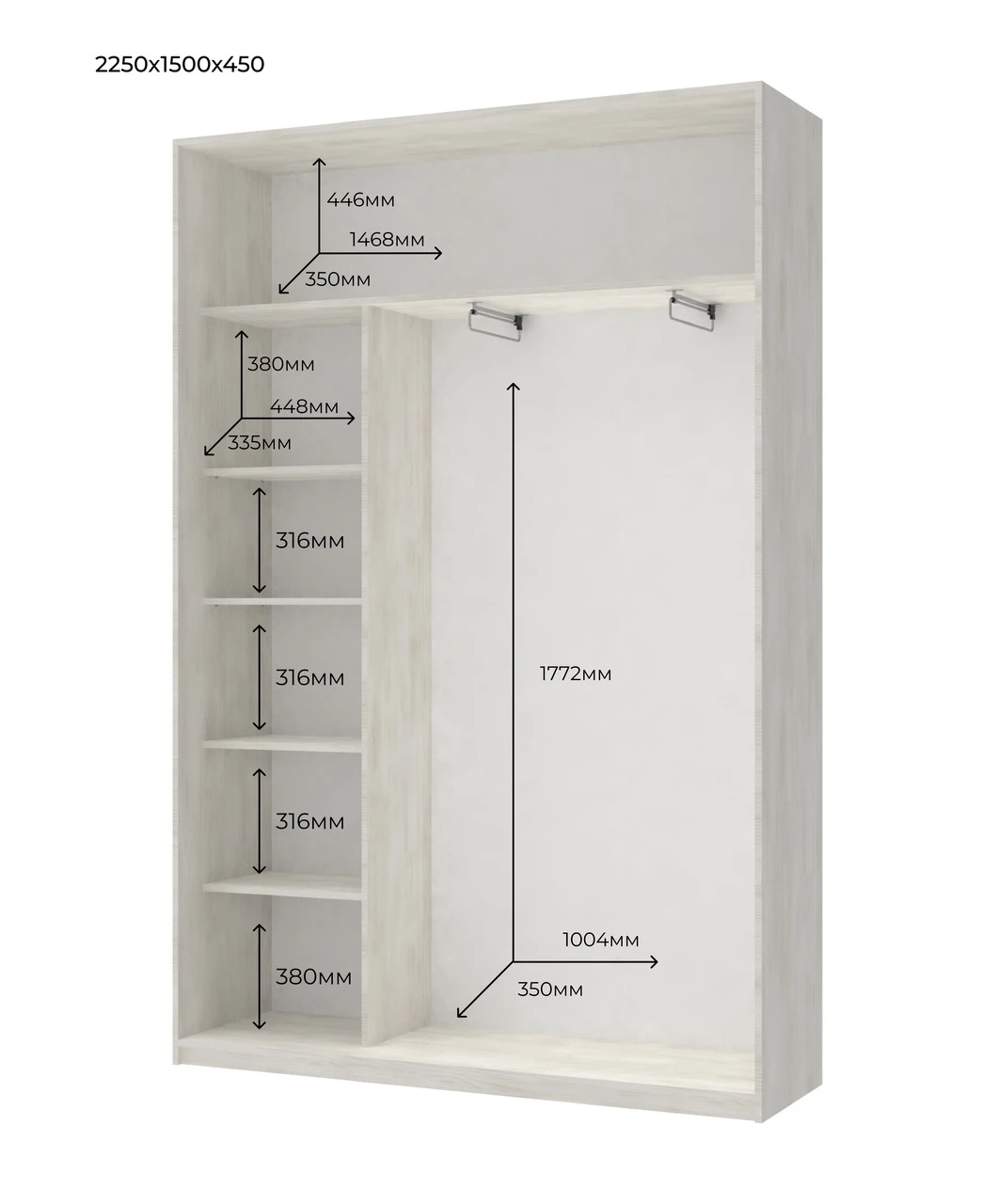 - Высота шкафа, см 2250