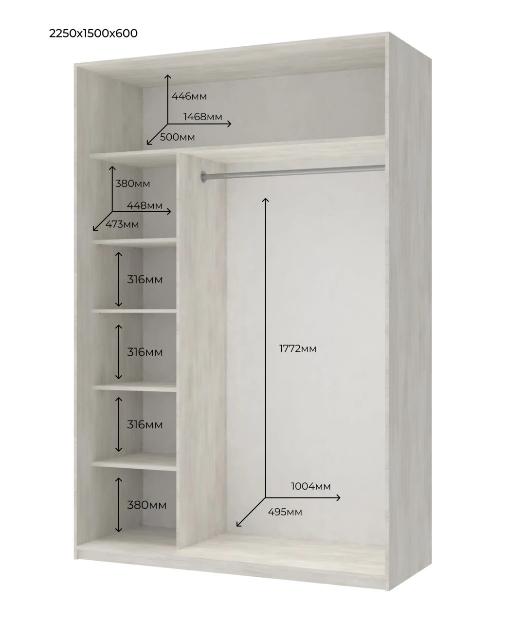 - Высота шкафа, см 2250