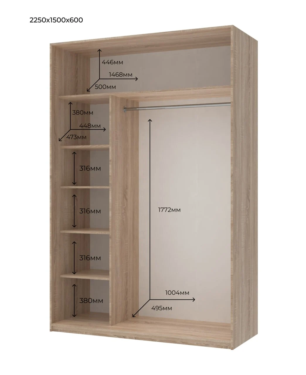 Шафа-купе двохдверна Doros Сіті Лайт 150х60х225 см Дуб сонома/1 Дзеркало (DRS-011083)