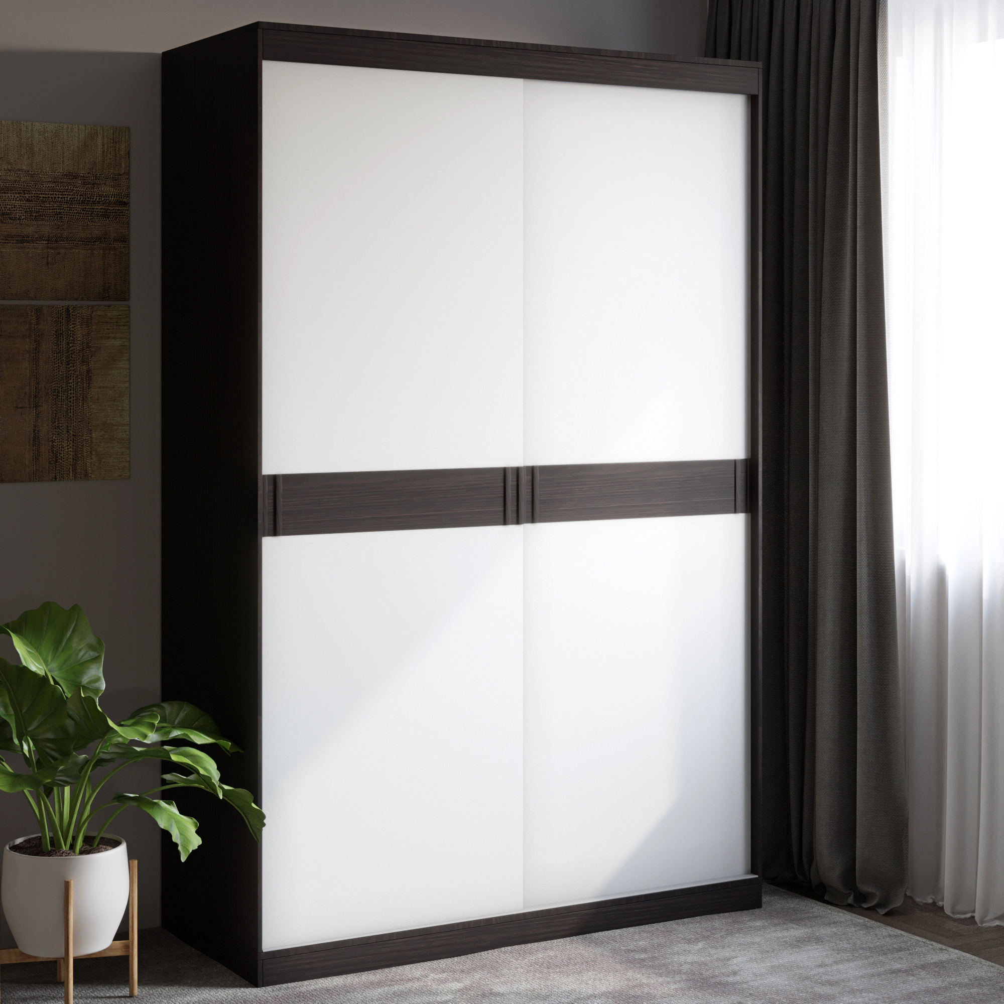 Відкрийте для себе ідеальне рішення для організації простору у вашому домі з шафою-купе Еверест Соната. Її елегантний дизайн у поєднанні темного венге та білого кольору створює сучасний вигляд, що підходить для будь-якого інтер'єру. Завдяки продуманій конструкції, ця дводверна шафа забезпечує достатньо місця для зберігання одягу та аксесуарів, а також додає естетики вашому житловому простору.