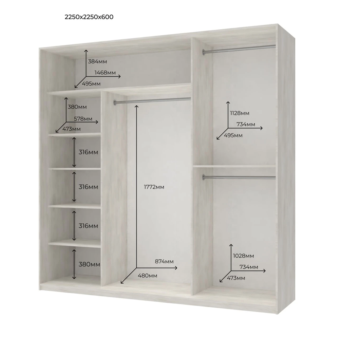 - Высота шкафа, см 2250
