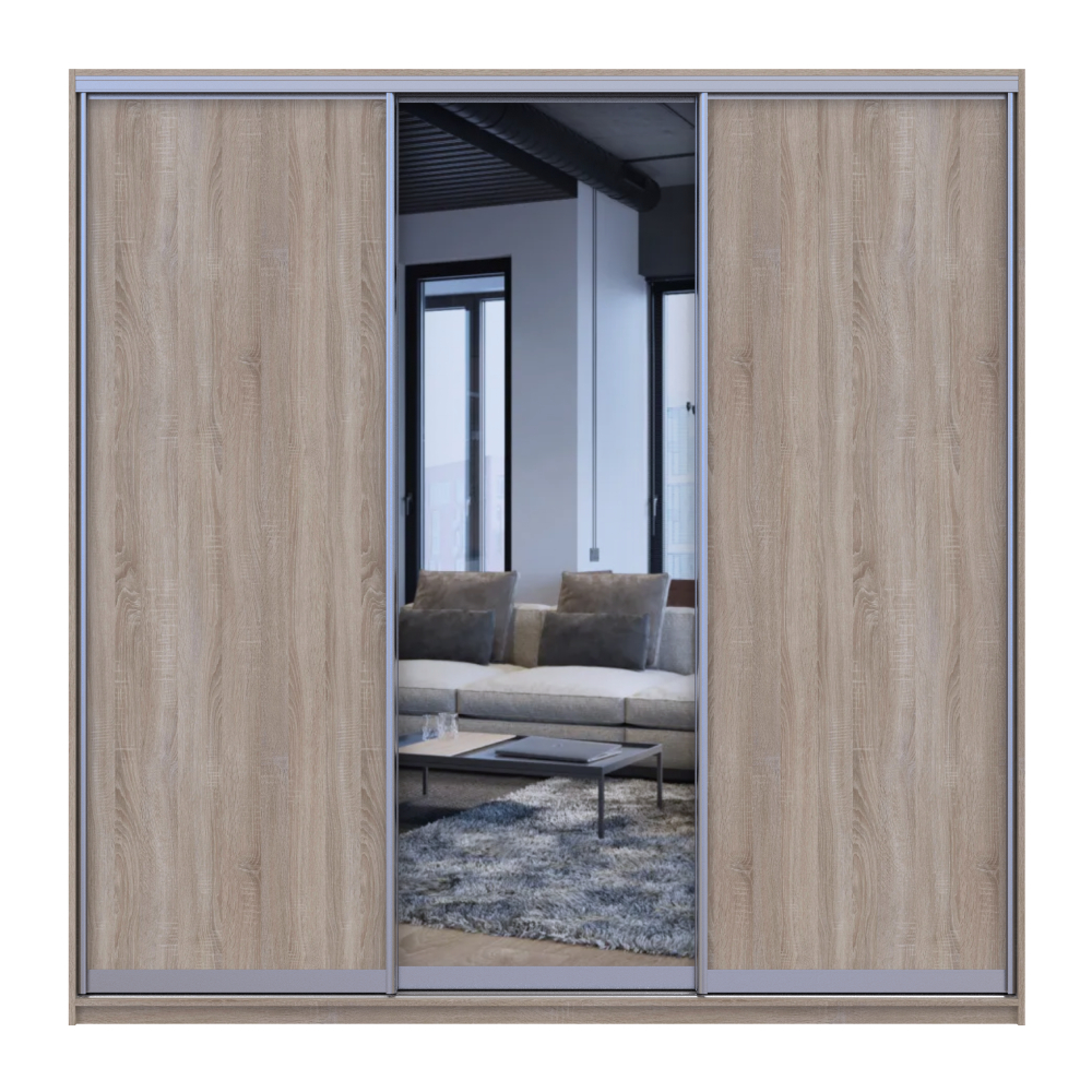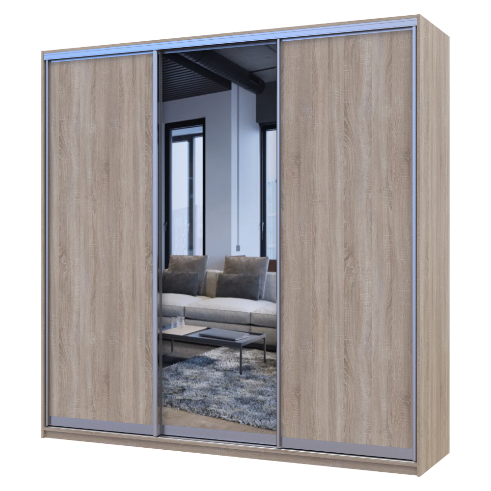 Шафа-купе трьохдверна Doros Сіті Лайт 225х60х225 см Дуб сонома/1 Дзеркало (DRS-011098)