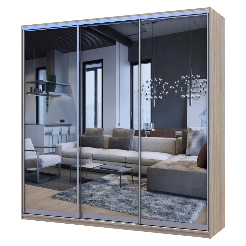 Шафа-купе трьохдверна Doros Сіті Лайт 225х60х225 см Дуб сонома/3 Дзеркала (DRS-011096)