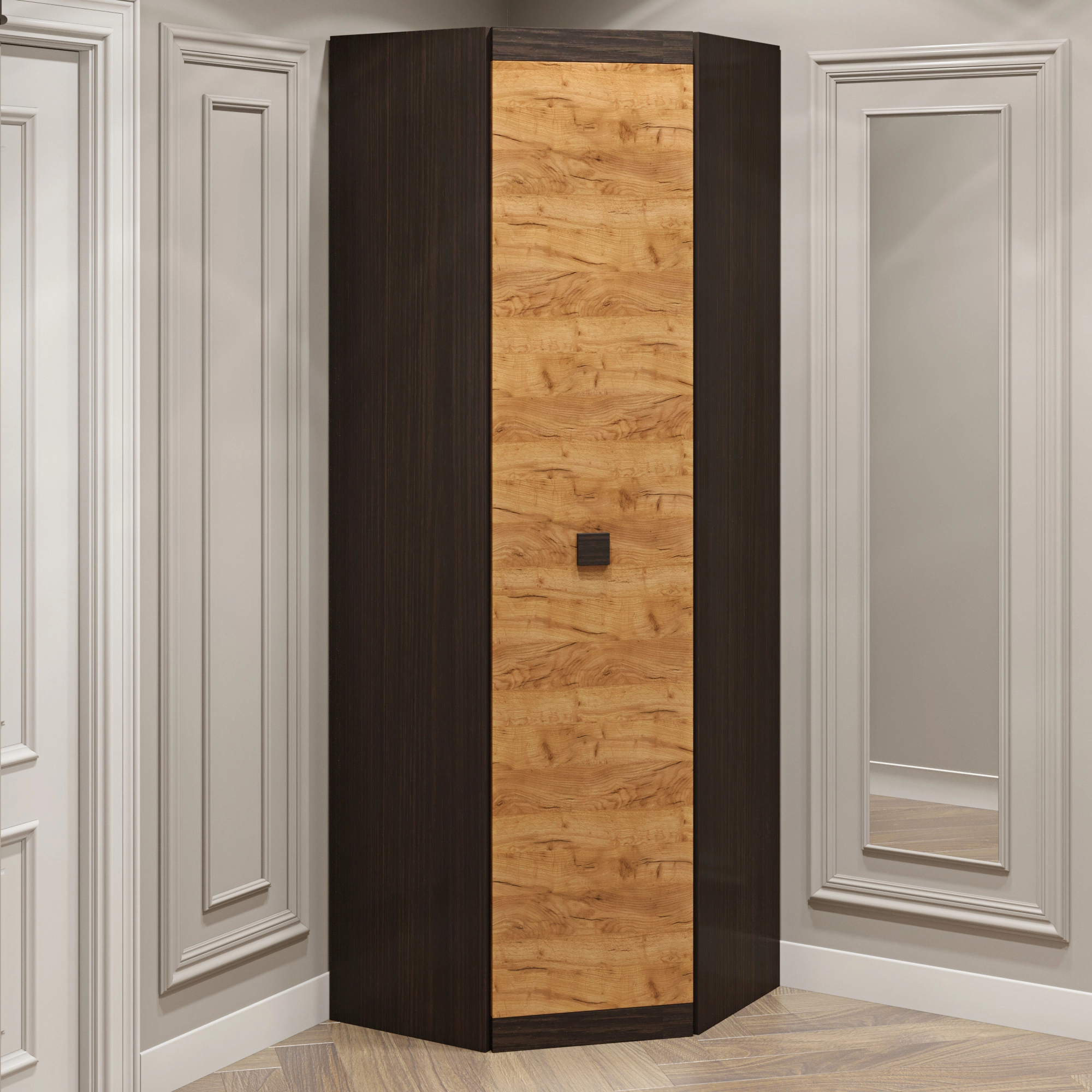 Шафа кутова Еверест Соната-700 у стильному поєднанні венге темного та дуба крафт золотого стане справжньою окрасою вашого інтер'єру. Її елегантний дизайн та функціональність допоможуть організувати простір, надаючи можливість зберігати речі з максимальним комфортом. Завдяки продуманій конструкції, ви зможете легко вписати цю шафу в будь-який куточок вашого дому.