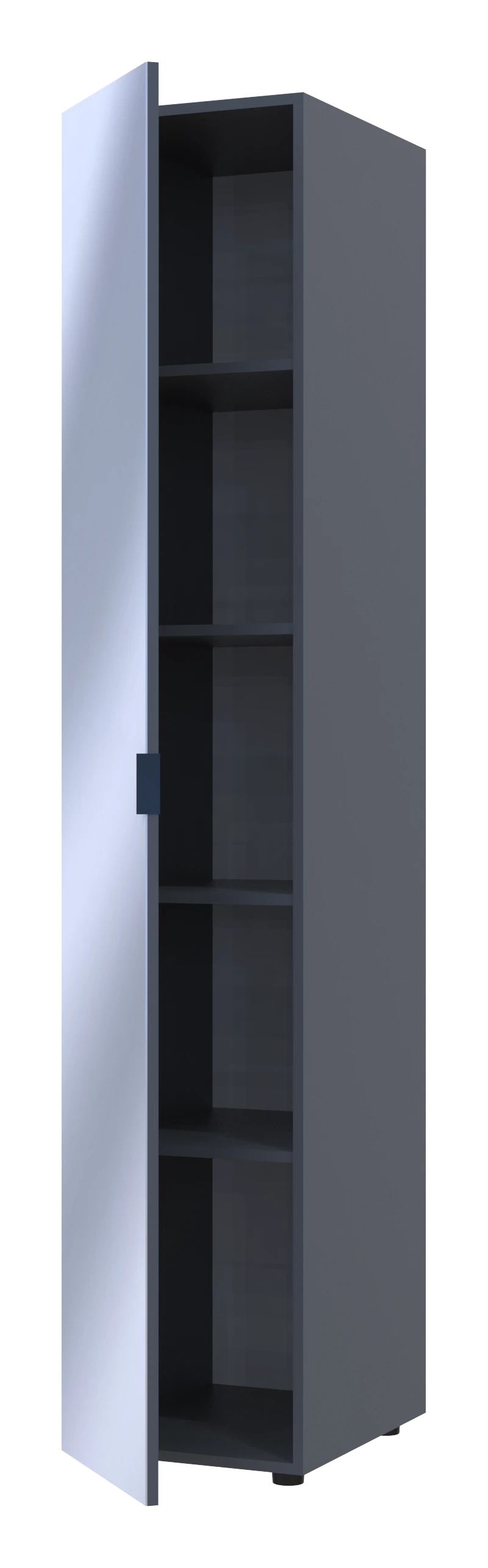 Шафа-пенал з дзеркалом Doros Гелар — це ідеальне рішення для вашого інтер'єру. Завдяки сучасному дизайну та елегантному графітовому кольору, вона стане яскравим акцентом у вашій кімнаті. Компактні розміри 39х49,5х203,4 см дозволяють розмістити її навіть у невеликих приміщеннях, при цьому забезпечуючи достатньо місця для зберігання речей. Дзеркало, вмонтоване в дверцята, не лише додає функціональності, але й візуально розширює простір.