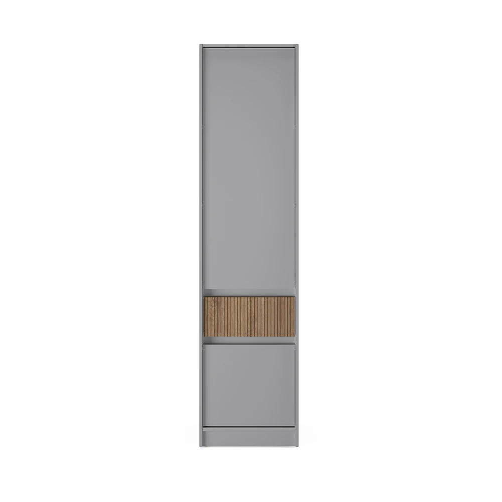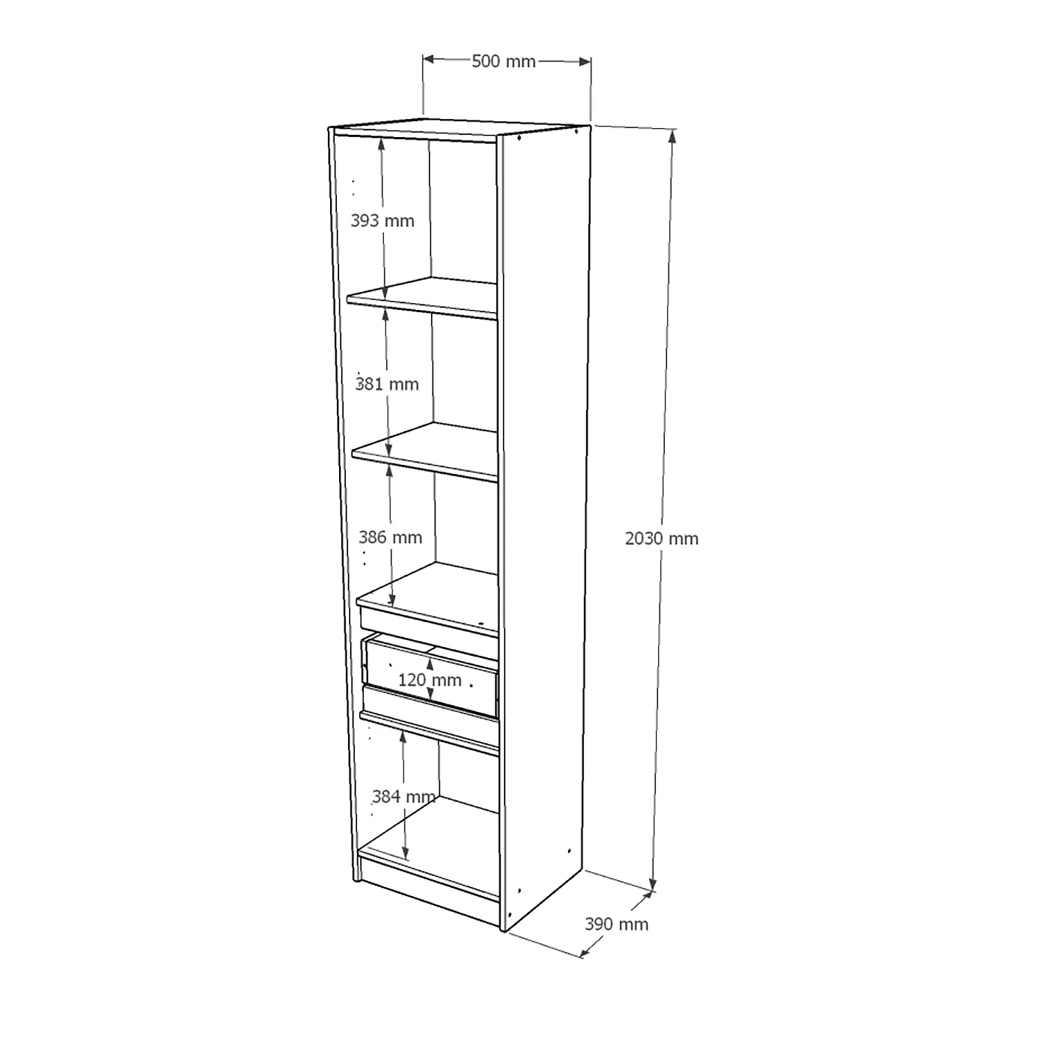 Завдяки своїм компактним розмірам 50х39х203 см, ця шафа ідеально підійде для малогабаритних приміщень, при цьому не поступаючись у місткості. У ній ви зможете зручно зберігати все необхідне: від одягу до побутових речей. Полички та шухляда забезпечують легкий доступ до ваших речей, що робить їх використання максимально зручним.