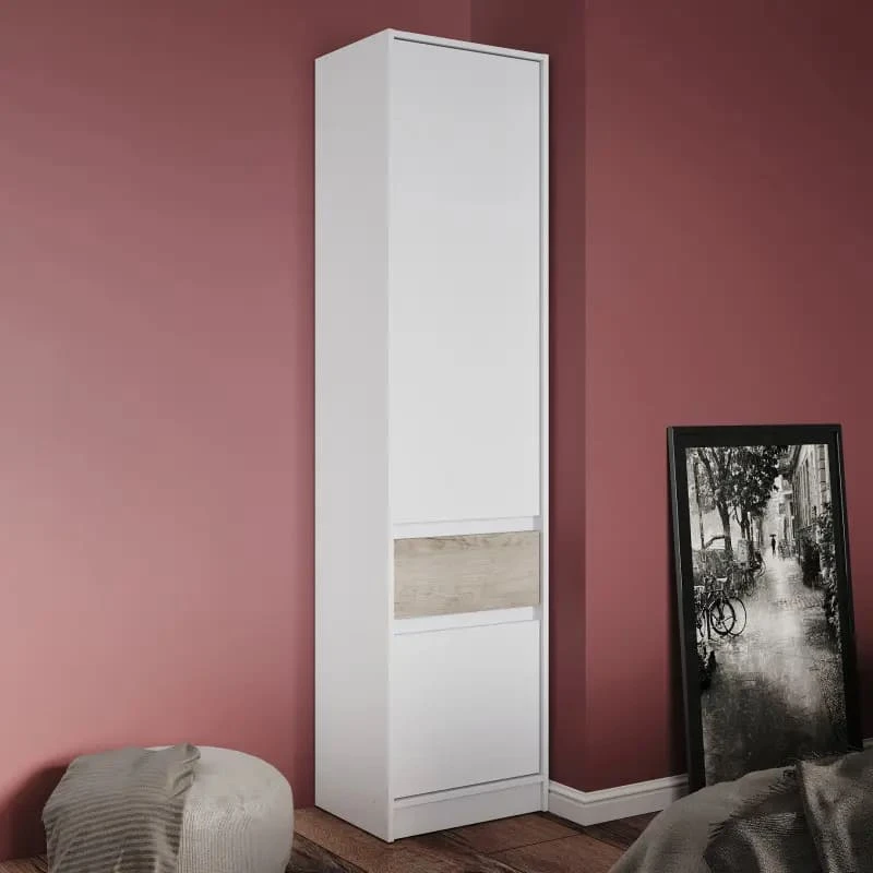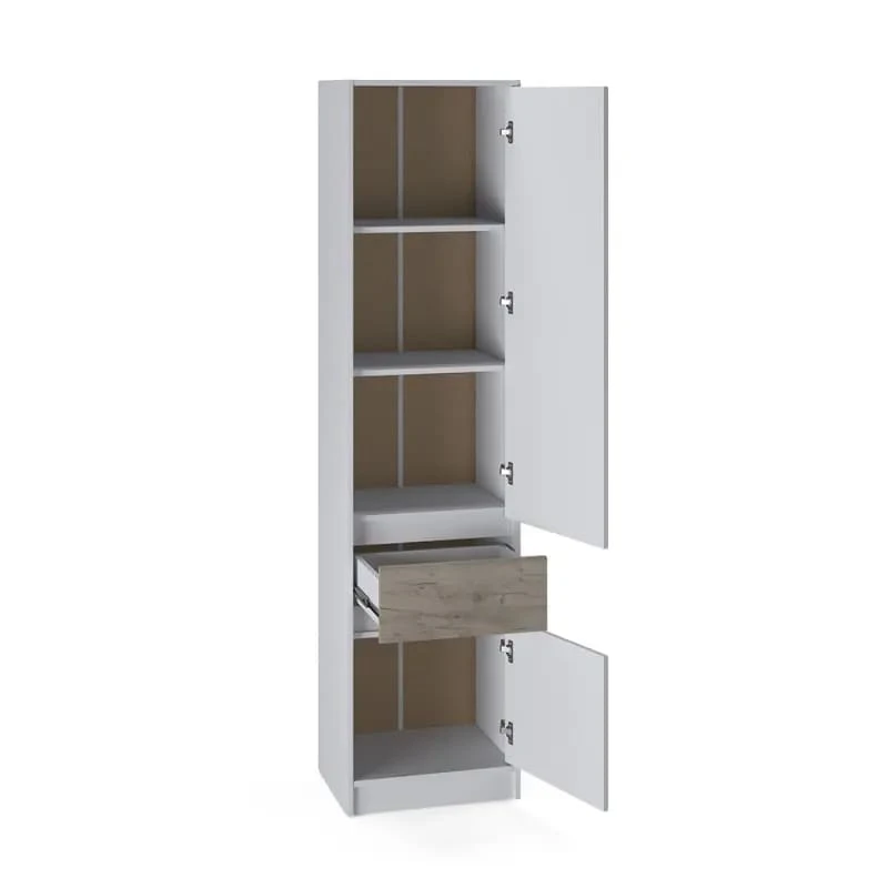 Шафа-пенал закрита з полицями та шухлядою Еверест Стайл-500 50х39х203 см Німфея Альба (білий)/Дуб кр