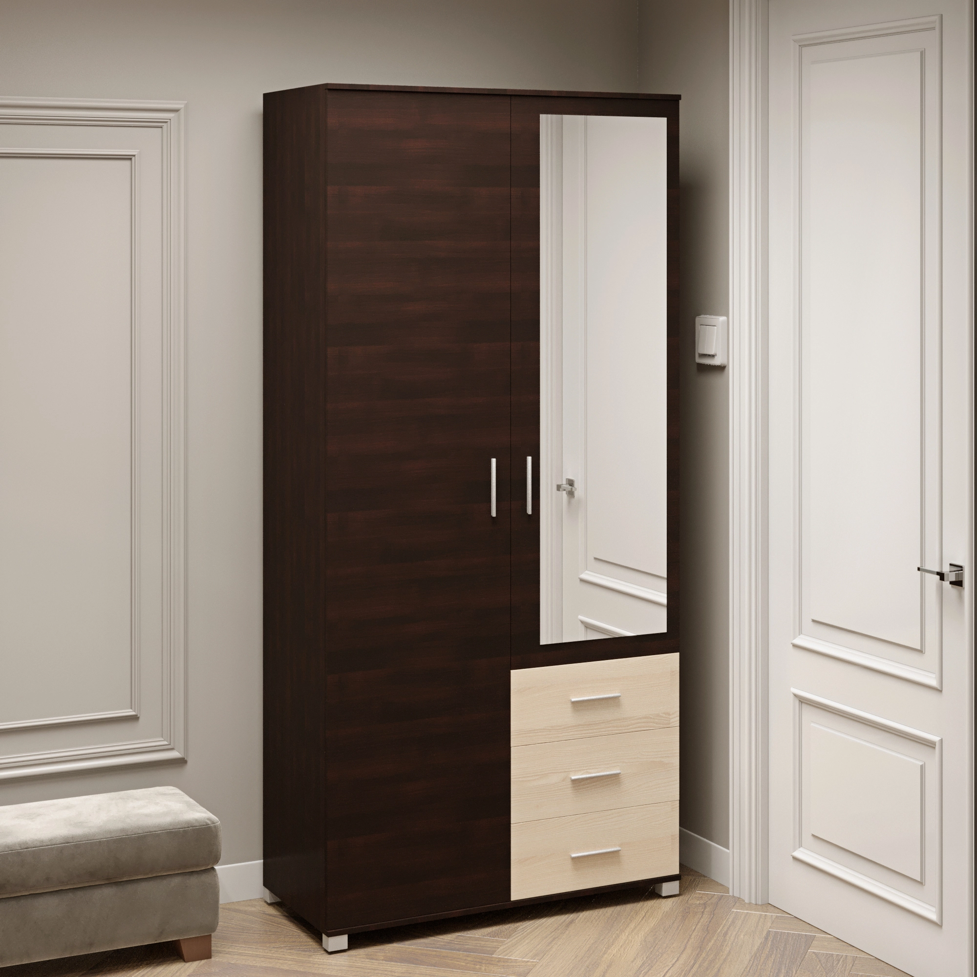 Шафа пряма з дзеркалом та ящиками Еверест Бриз ШП-4 венге + дуб молочний (DTM-2479)
