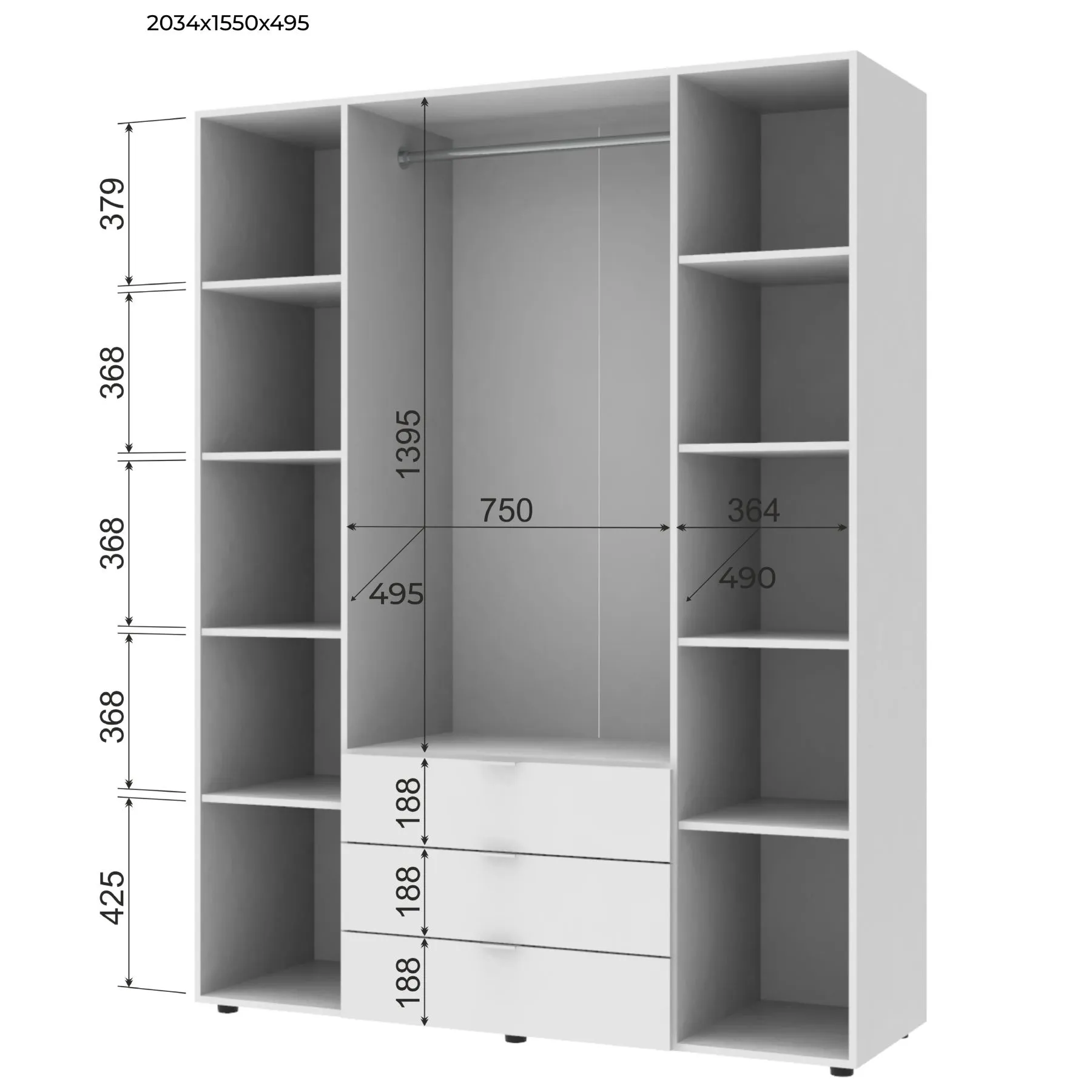 - Компактні розміри: ширина 155 см, глибина 49,5 см, висота 203,4 см.