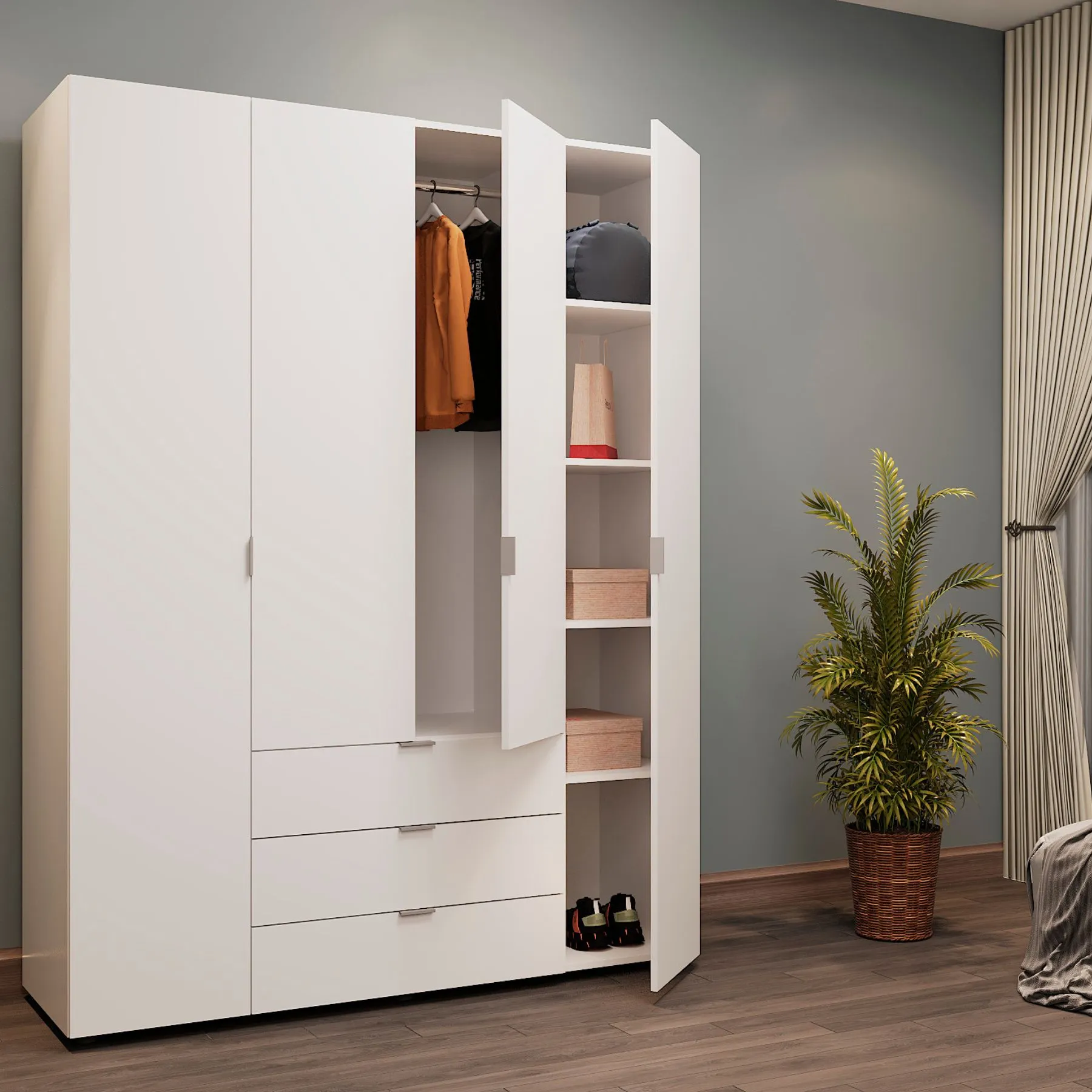 Містке внутрішнє наповнення, включаючи полиці та штангу для одягу, забезпечує зручність у користуванні. Надійна конструкція з ламінованої ДСП гарантує довгий термін експлуатації.