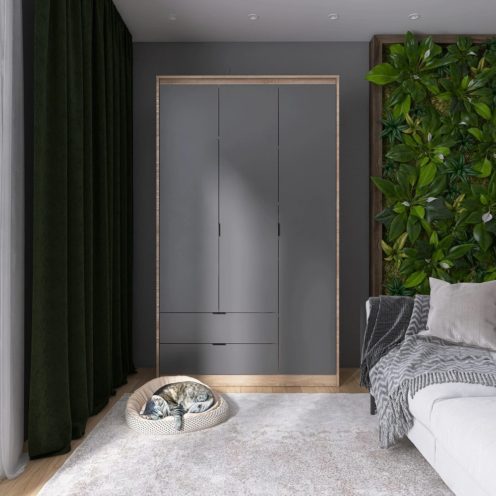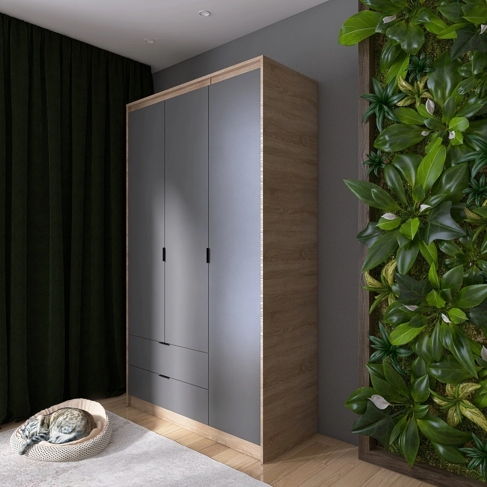 Представляємо вам шафу розпашну Еверест Сіті-1200, яка стане не лише стильним доповненням вашого дому, а й практичним місцем для зберігання одягу. Завдяки висувним шухлядам та продуманій конструкції, ви зможете легко організувати свій гардероб. Виготовлена з якісних матеріалів у кольорах дуб сонома та графіт, ця шафа поєднує елегантність та функціональність, що робить її ідеальним вибором для будь-якого інтер'єру.