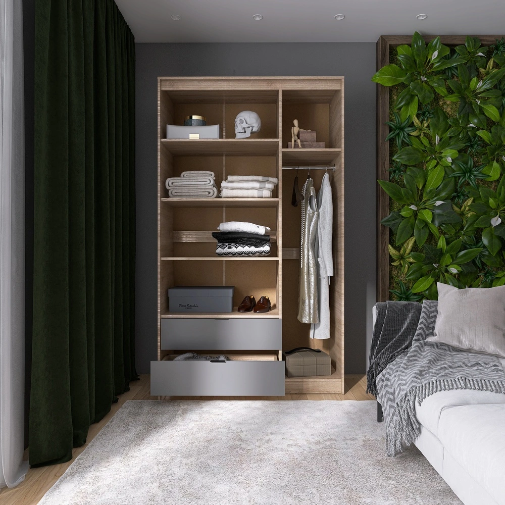 Шафа розпашна для одягу з висувними шухлядами (полиці - штанга) Еверест Сіті-1200 120,2х50х204,6 см