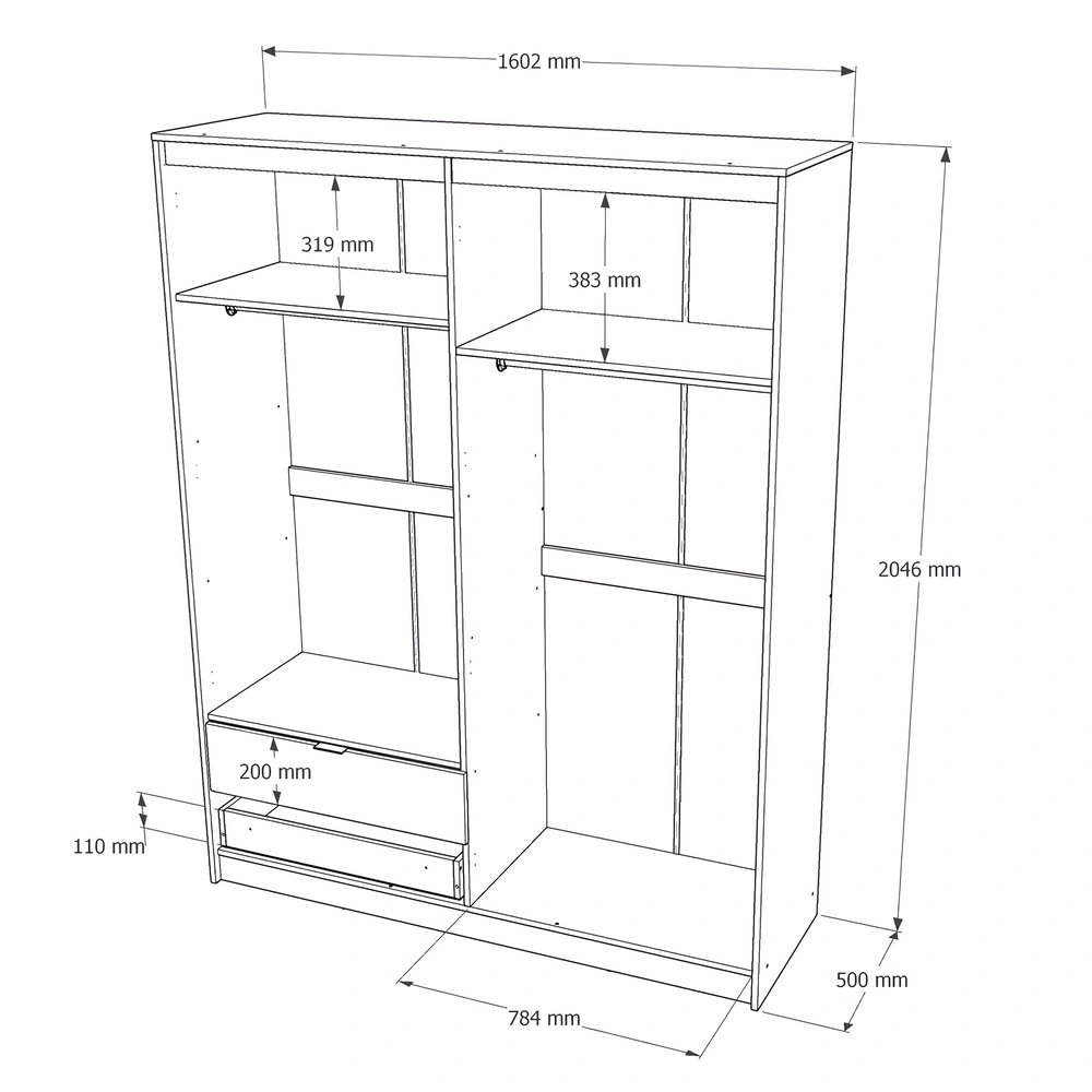 - Комплектация Штанга для одягу: 1 шт. Полиці: 2 шт.