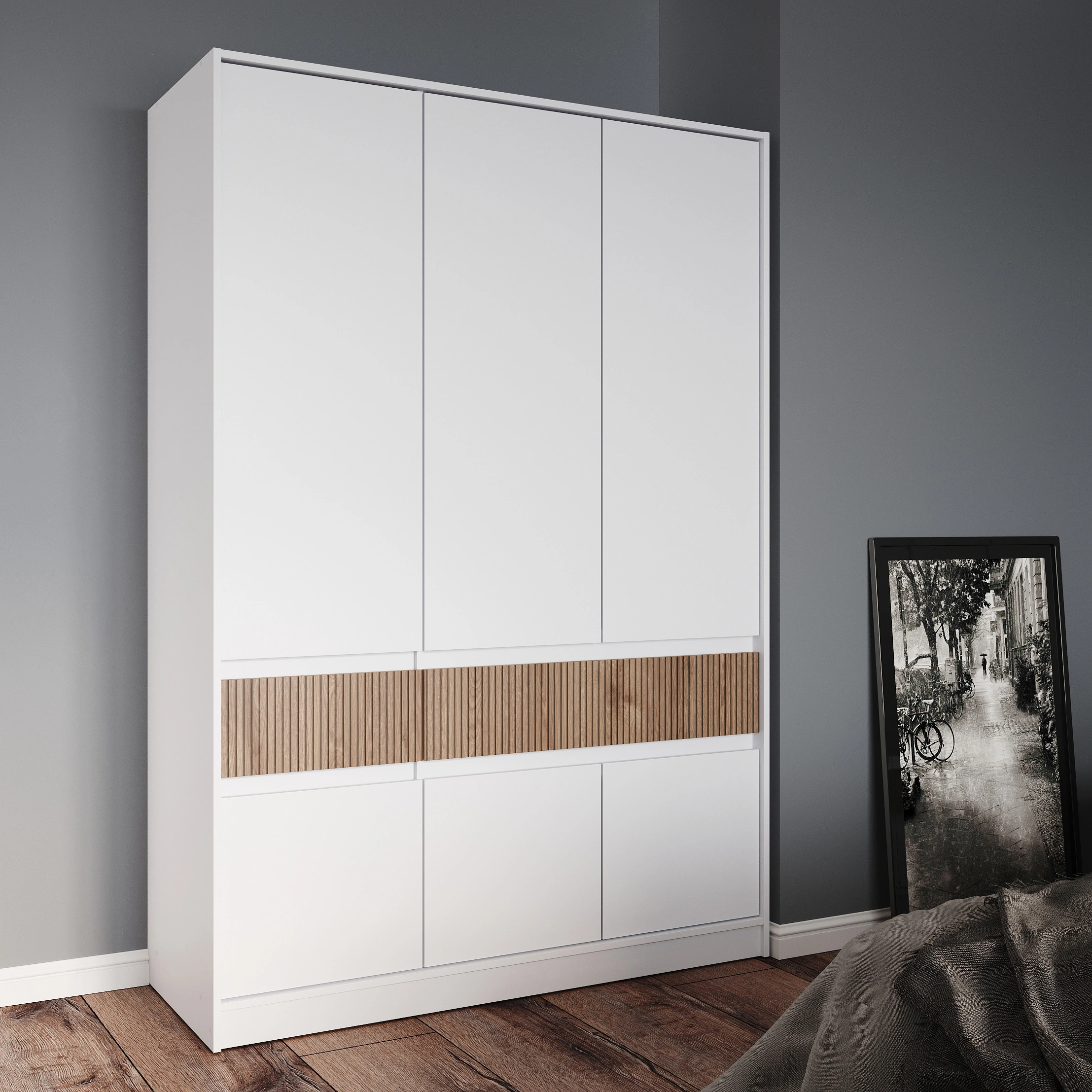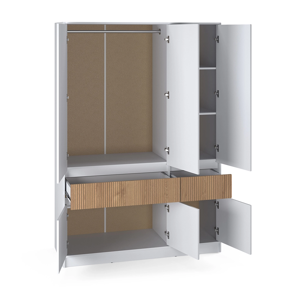 Ця шафа оснащена висувними шухлядами, що дозволяє зручно зберігати різноманітні речі, а також має полиці та штангу для одягу, що забезпечує оптимальну організацію простору. Ви зможете легко знайти потрібний одяг або аксесуари, не витрачаючи час на безлад.