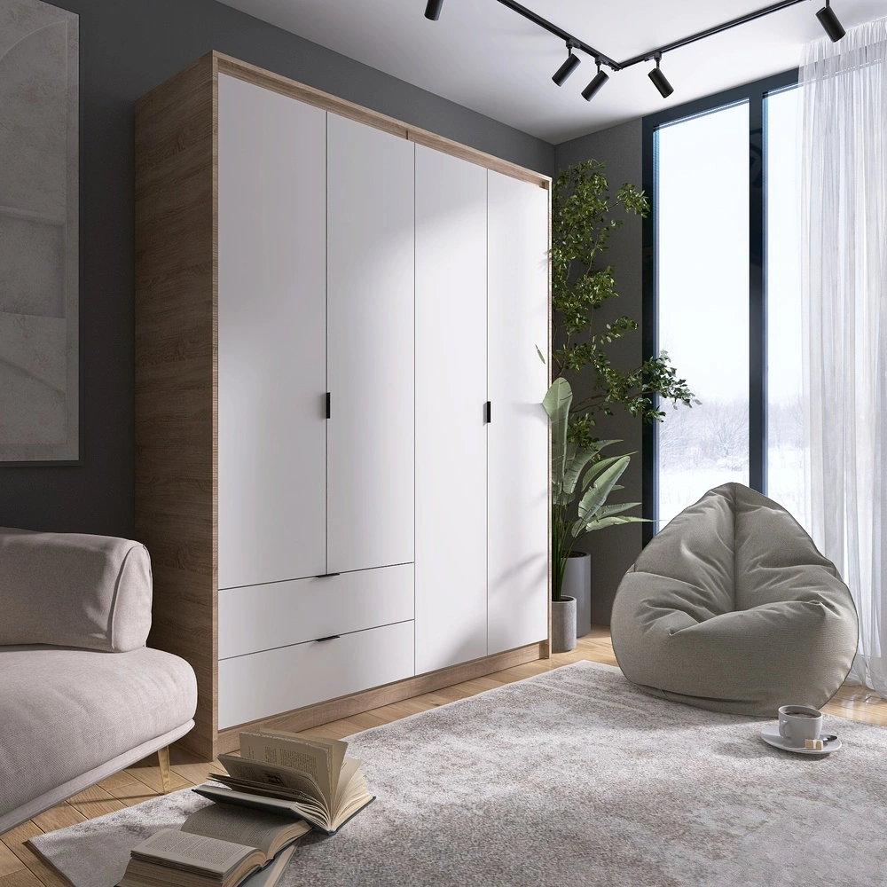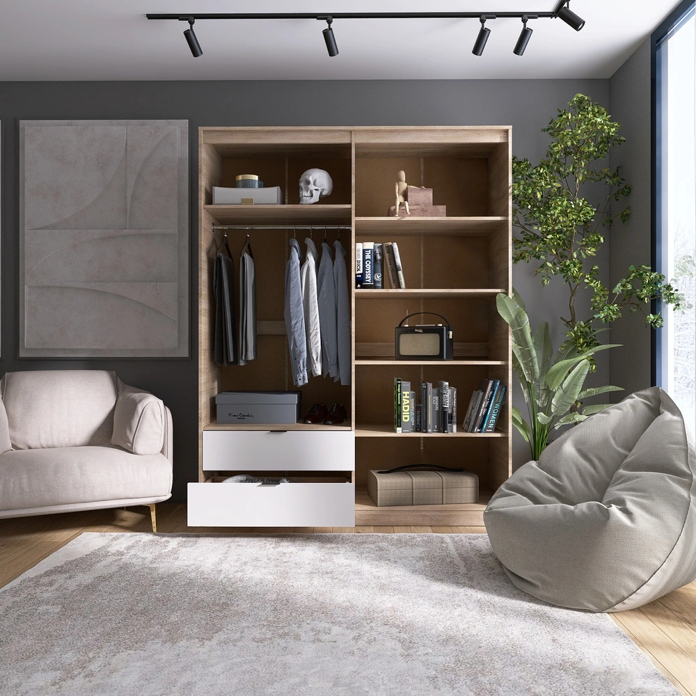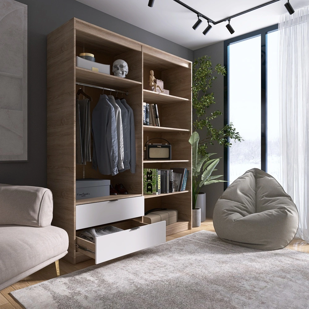 Відкрийте для себе ідеальне рішення для організації вашого простору з шафою розпашною Еверест Сіті-1600. Ця елегантна шафа поєднує в собі сучасний дизайн та практичність, що дозволяє з легкістю зберігати одяг та аксесуари. Висувні шухляди, штанга для вішалок і полиці створюють оптимальні умови для зберігання, а стильне поєднання дуба сонома та білого кольору додає вишуканості будь-якому інтер'єру.