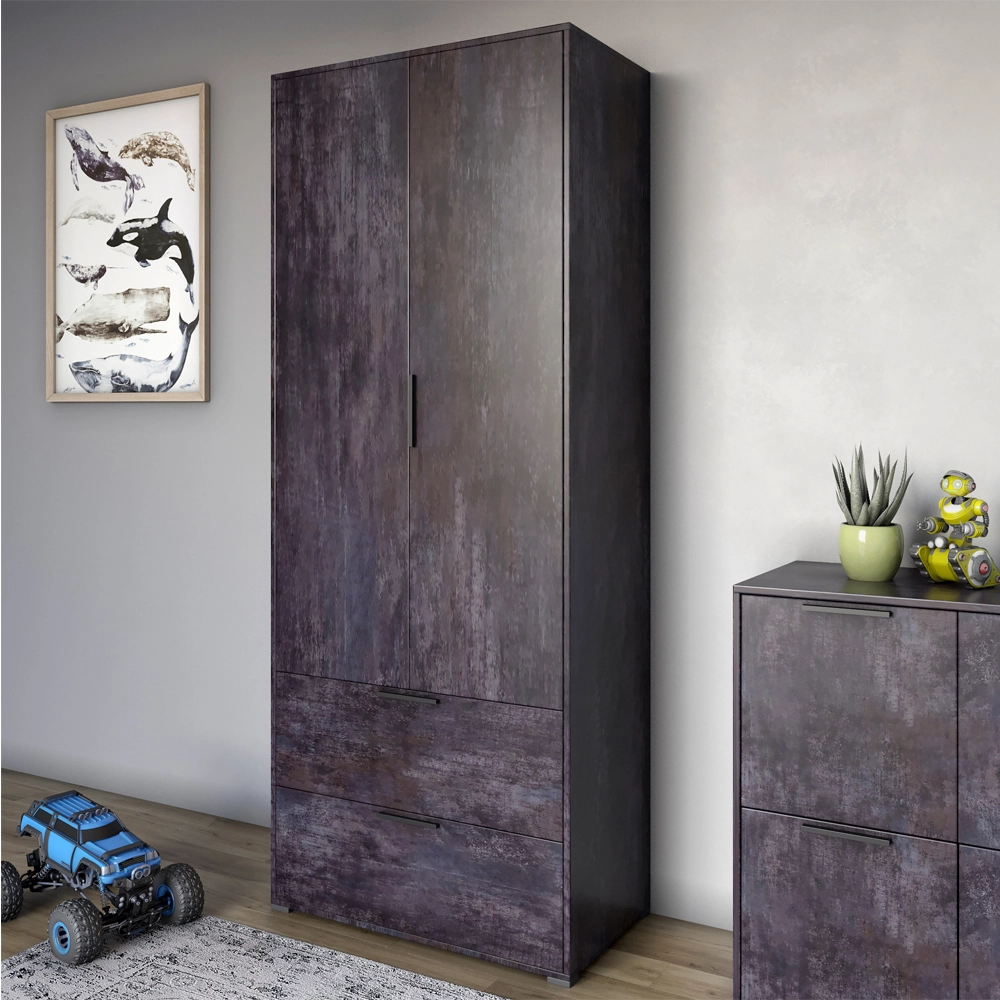 Шафа розпашна дводверна LION Краш з 2 шухлядами Бетон темний (LION-044020)