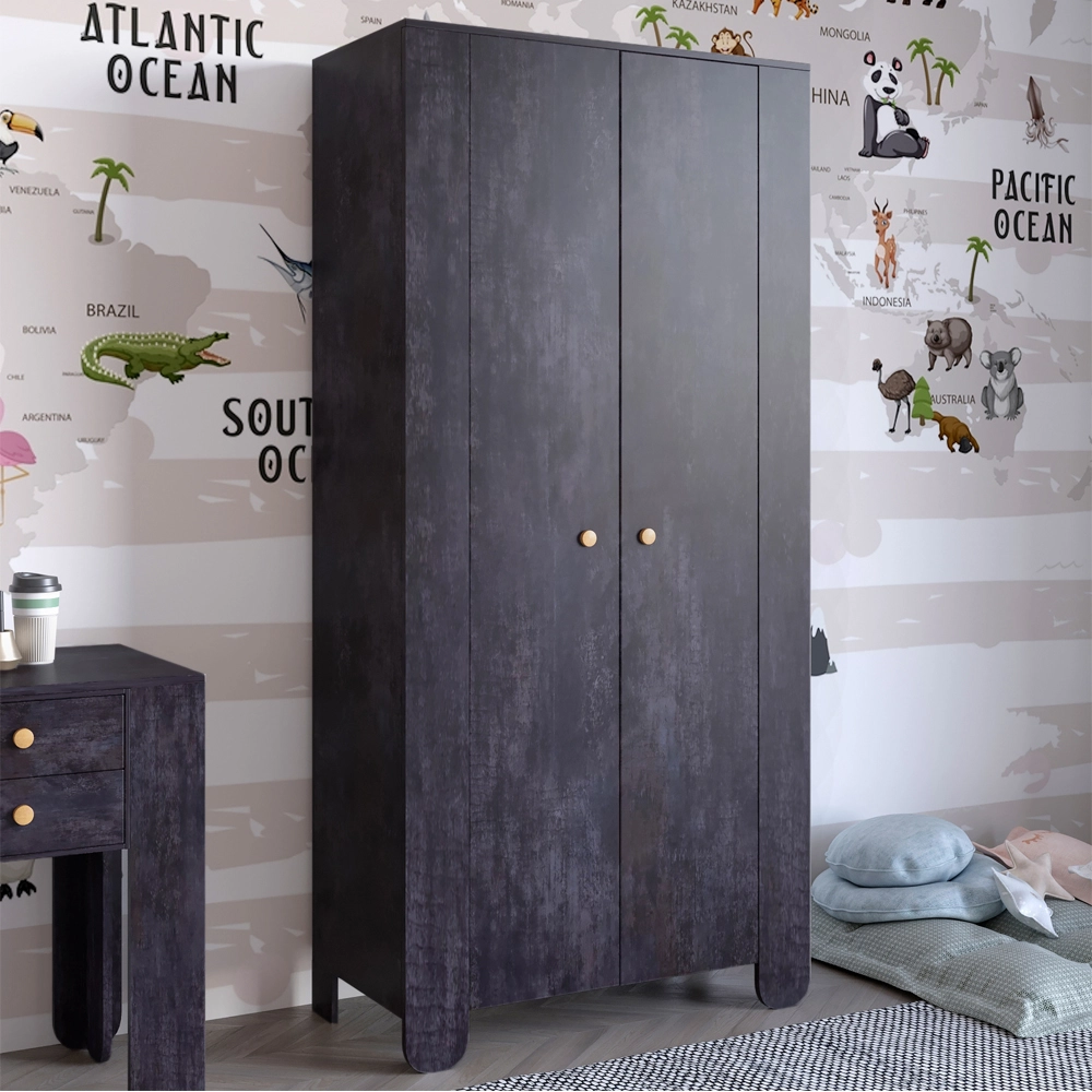 Шафа розпашна дводверна в дитячу кімнату 900х450х1900 LION Інді Бетон темний (LION-041575)