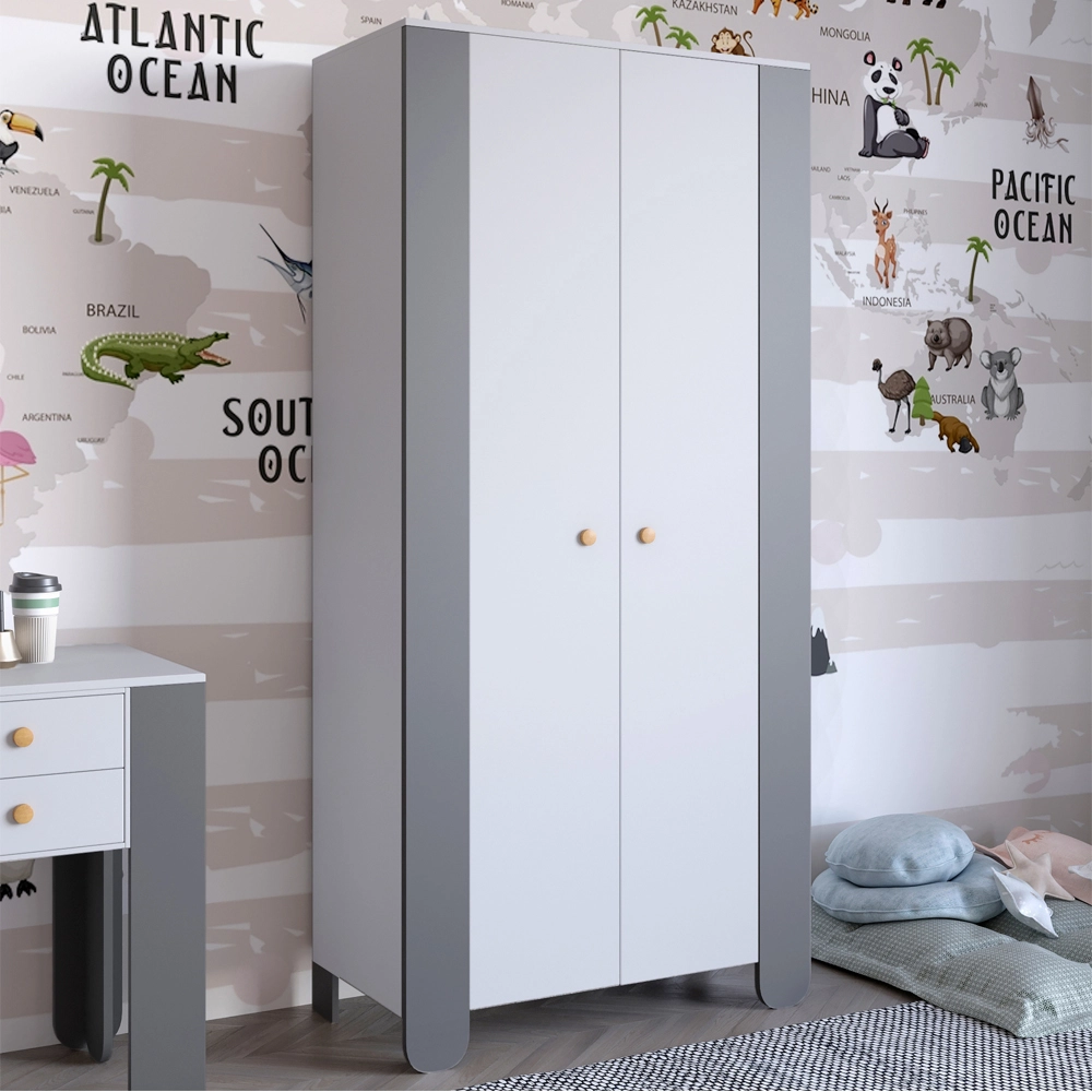 Шафа розпашна дводверна в дитячу кімнату 900х450х1900 LION Інді Німфея Альба (білий)/Антрацит (LION-